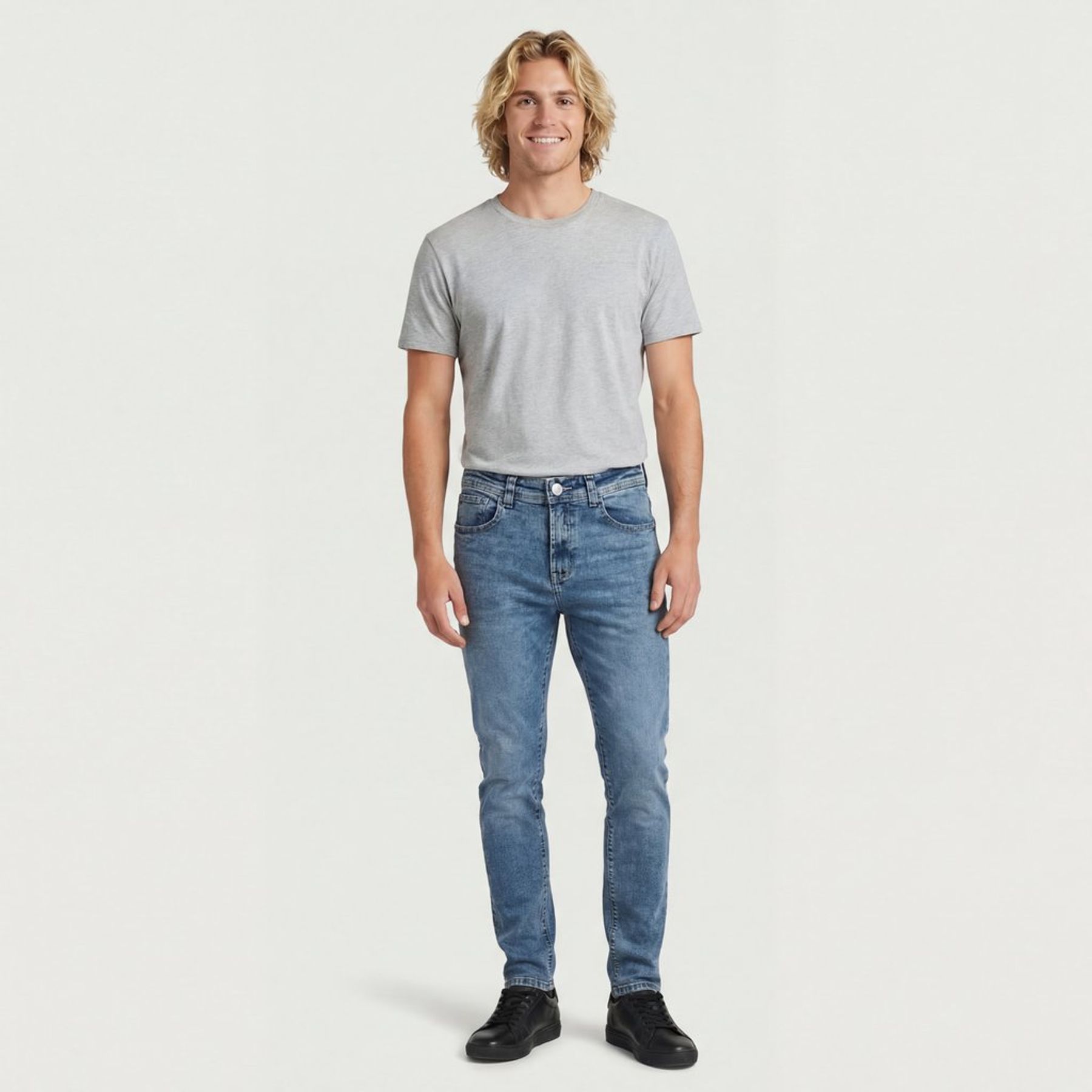 Calça Jeans Masculina Ajustada Lisa Azul Estonada - Ink
