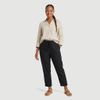 Calça Feminina Barrel com Pregas no Joelho Liso Creme - INK