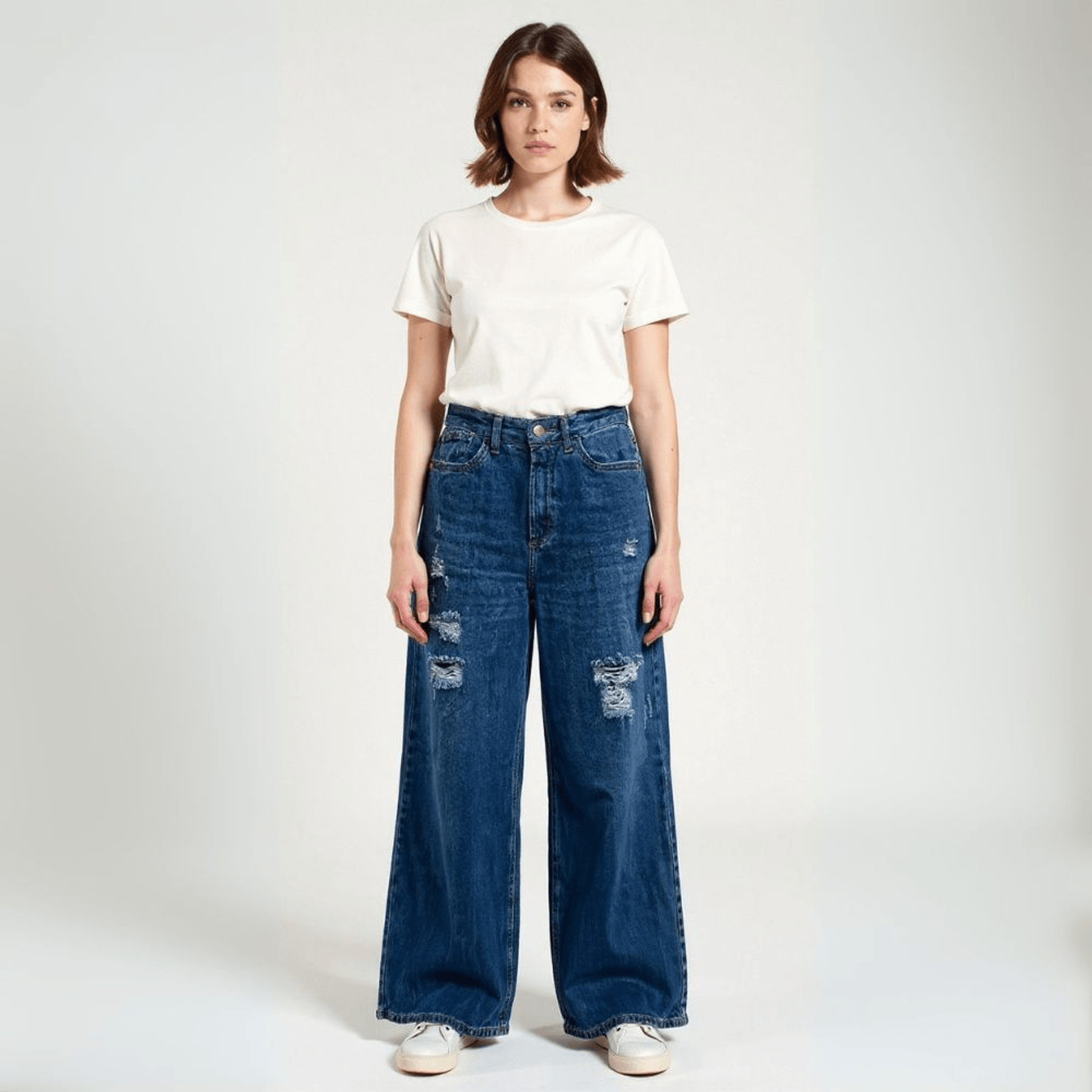 Calça Sarja Bege Wide Leg Lisa - INK