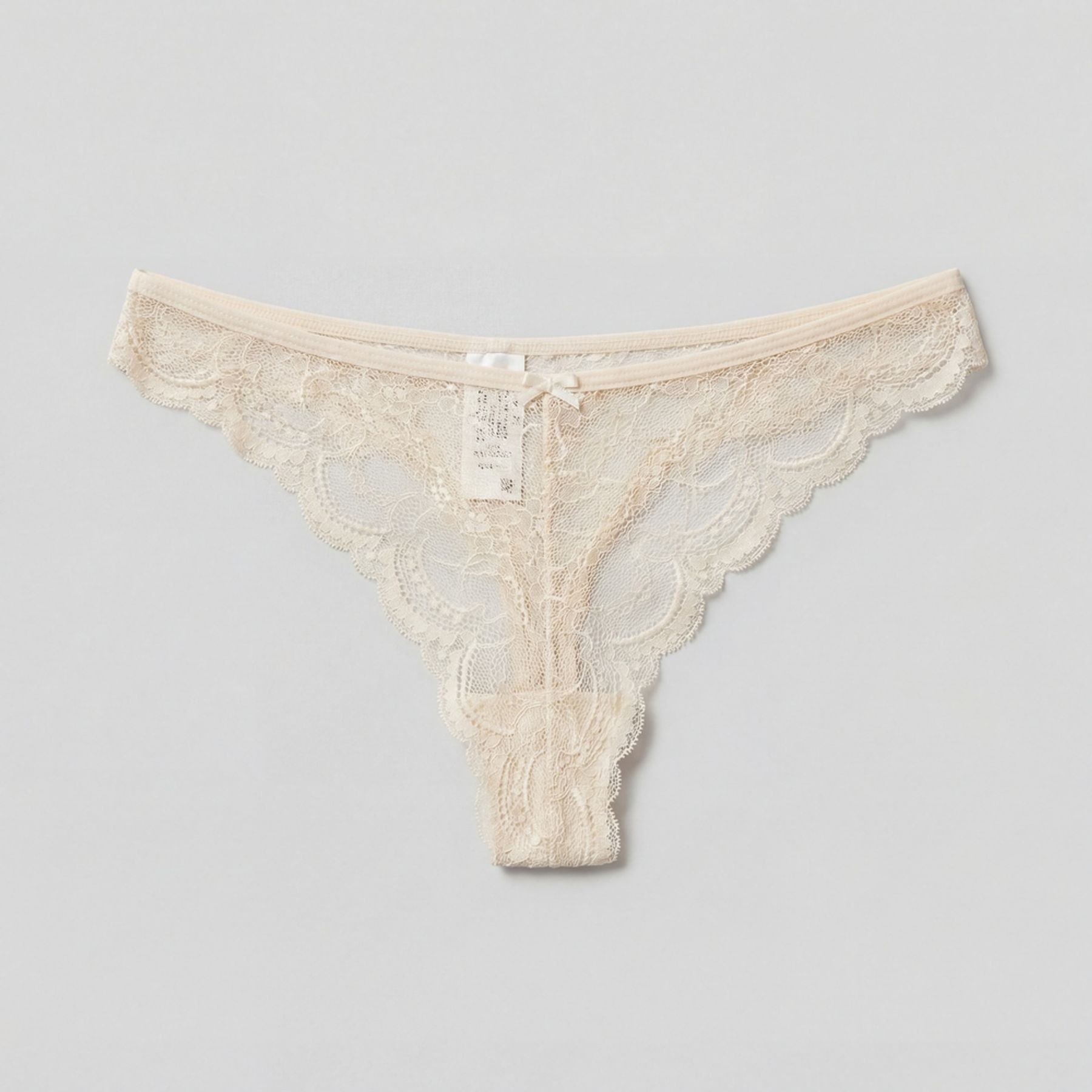 Economia de R$ 1,80A calcinha fio dental feminina Uniq em renda bege lisa é ideal para quem busca lingerie com visual delicado e toque sofisticado. Em composição mista com predominância de poliamida, possui renda floral por toda a peça, com transparência sutil que valoriza o design.