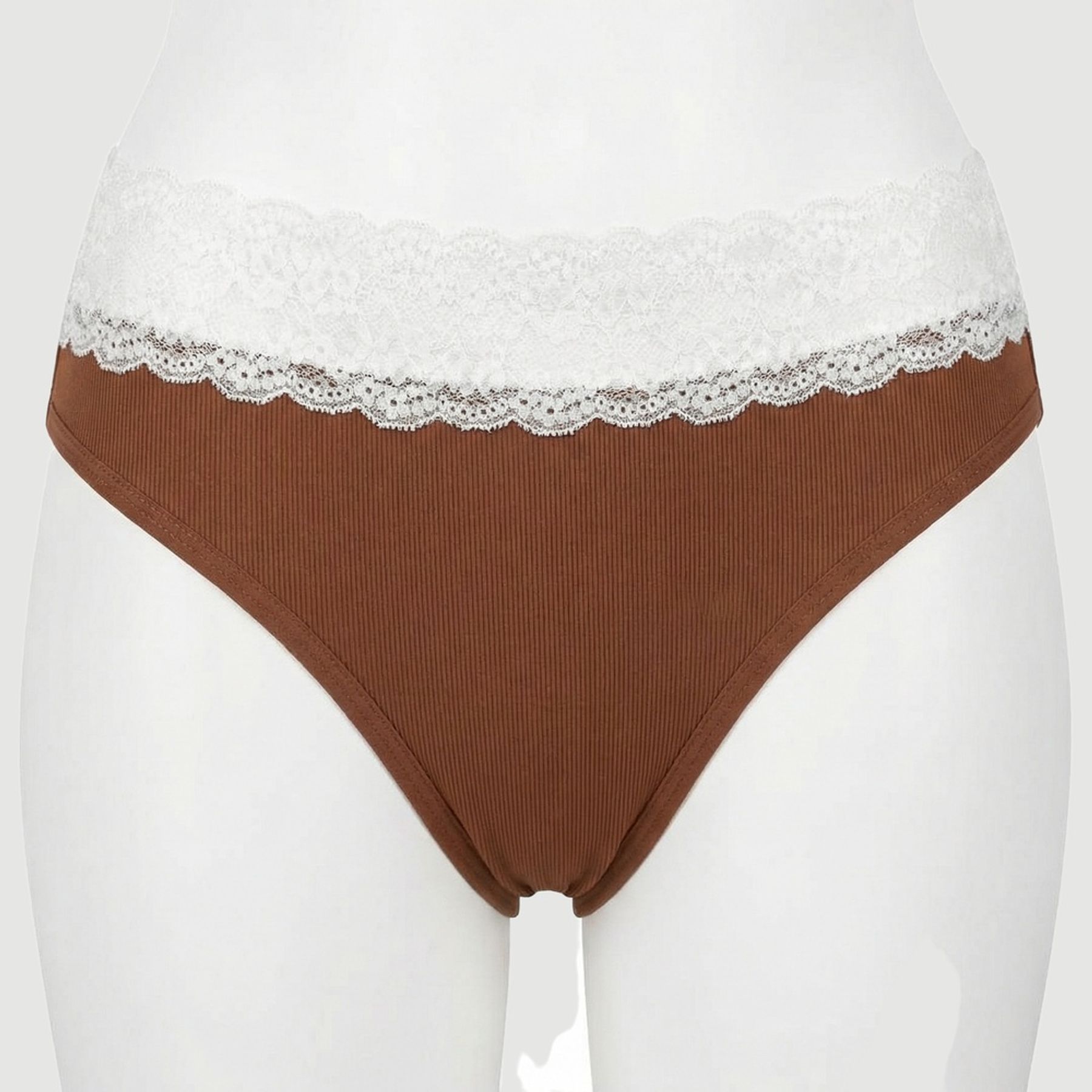 Calcinha Feminina Canelada Com Renda Bronze - Uniq
