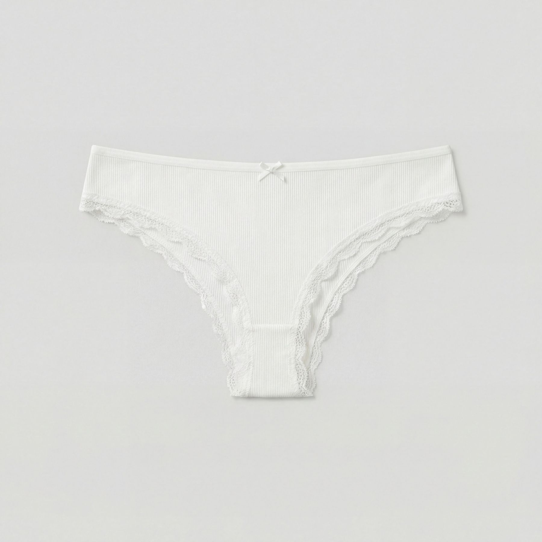 Calcinha Feminina Biquíni Canelada Com Renda Creme - Uniq