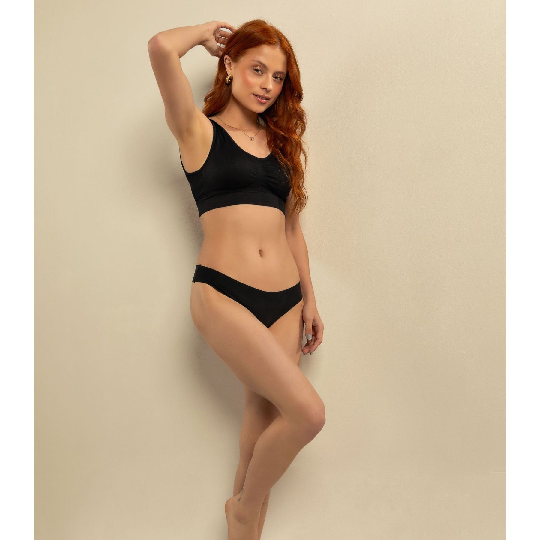 Calcinha Feminina Modeladora Cós Alto Lisa Preta
