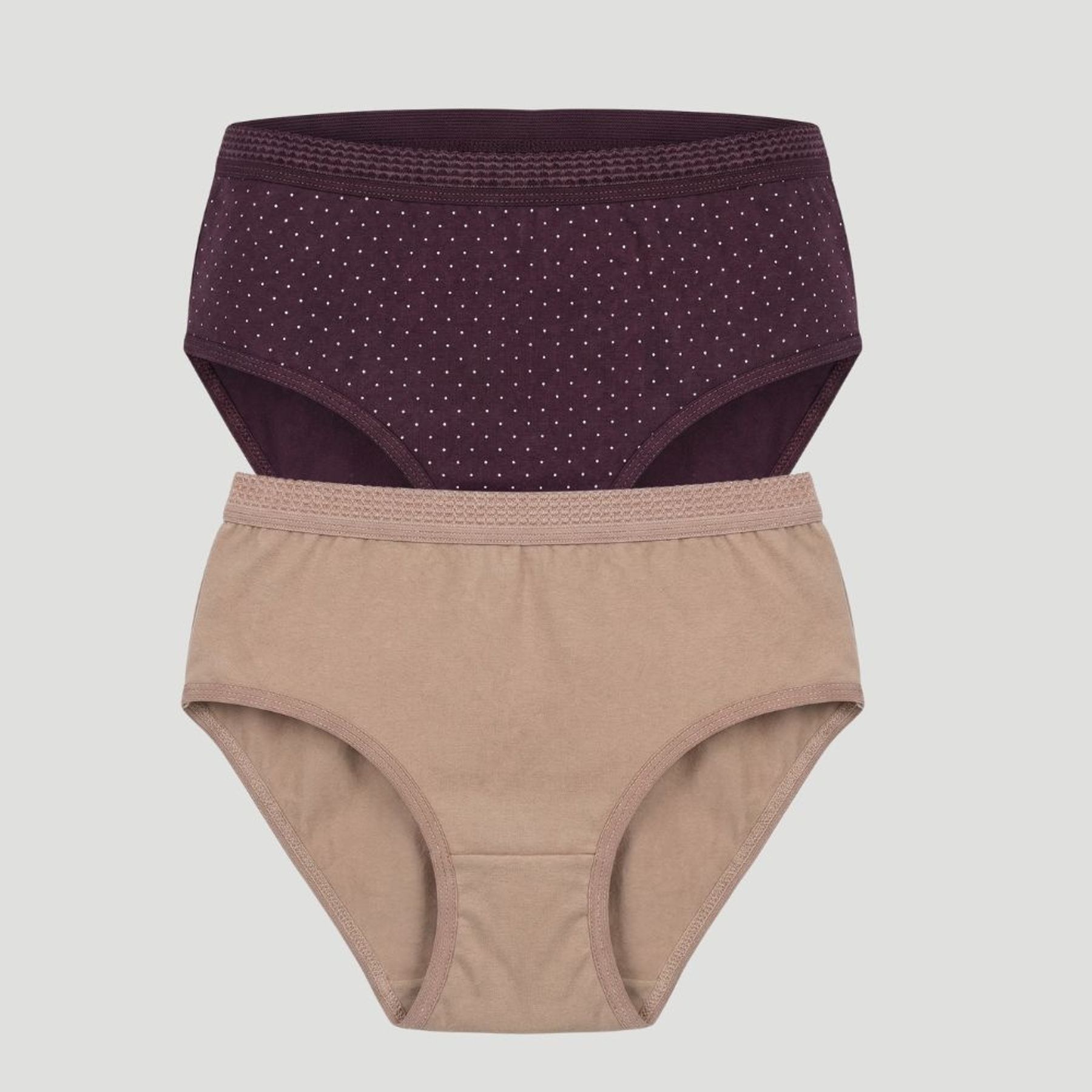 Economia de R$ 3,00Conjunto de calcinhas Uniq com modelagem de cintura alta, confeccionado em 100% algodão para um toque macio e respirável. A peça traz visual clássico em marrom com poá branco e acabamento com elástico no cós e nas cavas, oferecendo ajuste firme e confortável.