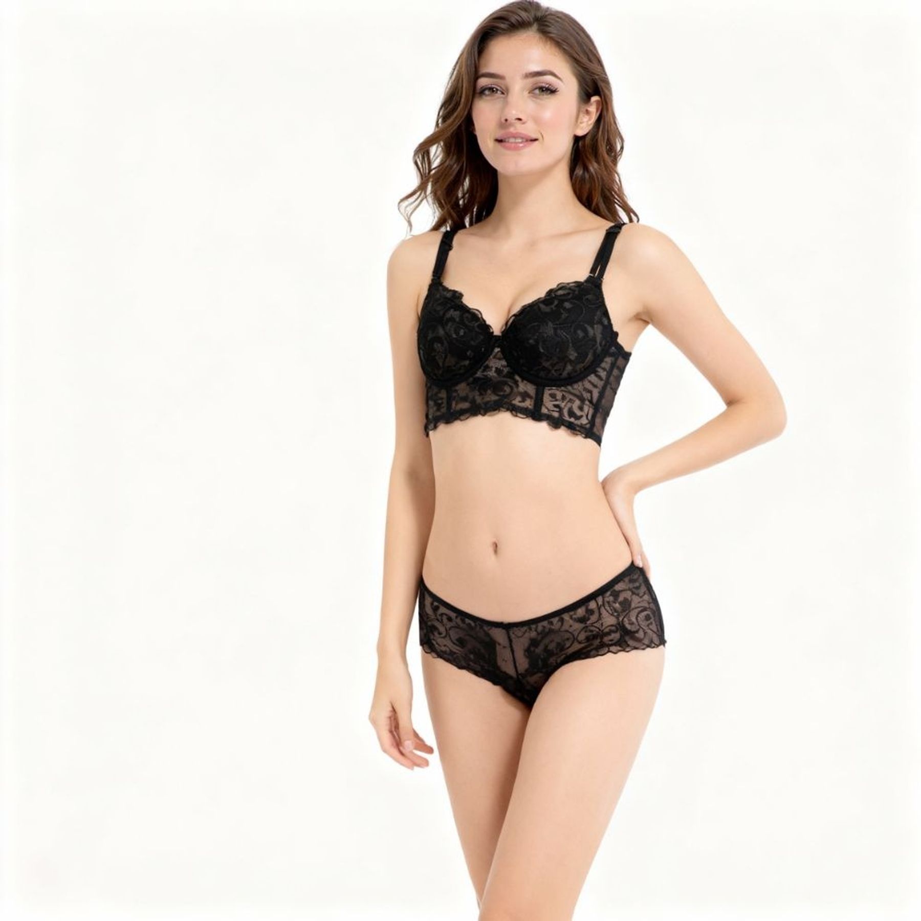 Calcinha Feminina Biquíni Sem Costura Canelada com Renda Preta - Uniq