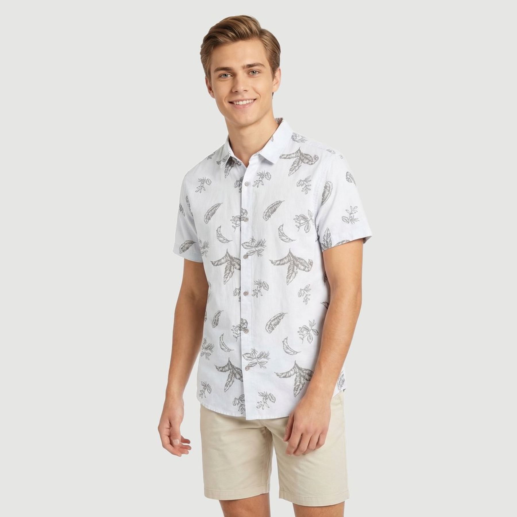 Camisa Masculina Manga Curta Casual Listrada Creme - Id Casual