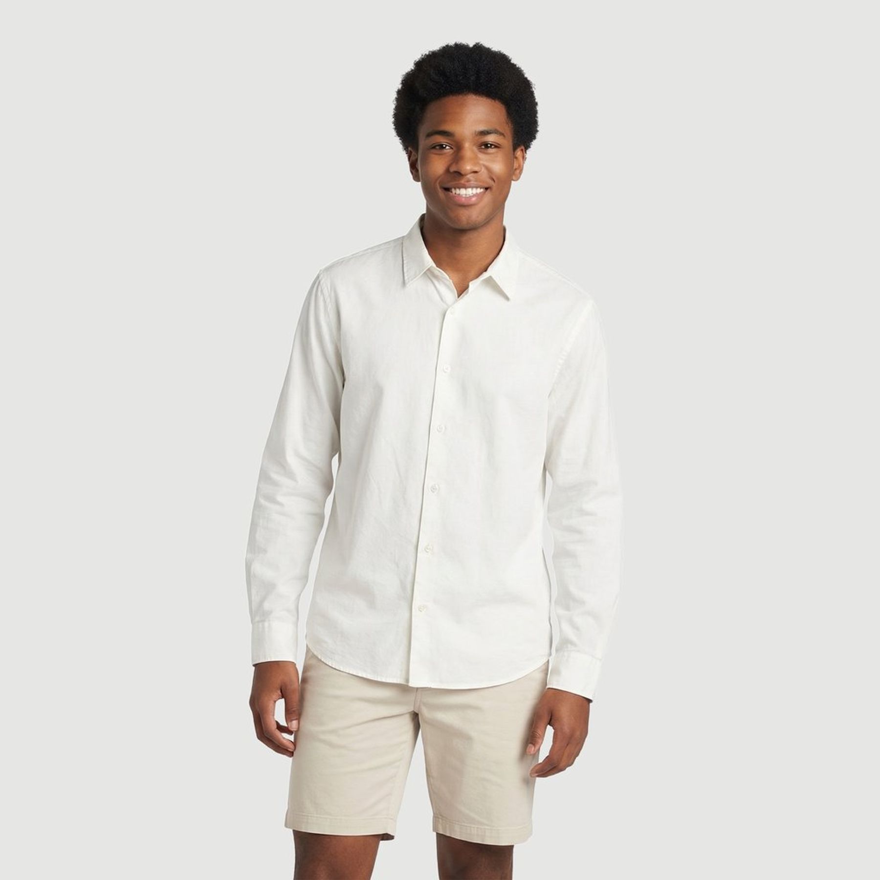 Camisa Masculina Manga Longa Lisa Bege - Id Casual