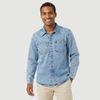 Camisa Jeans Manga Longa Marmorizada Azul Médio - INK