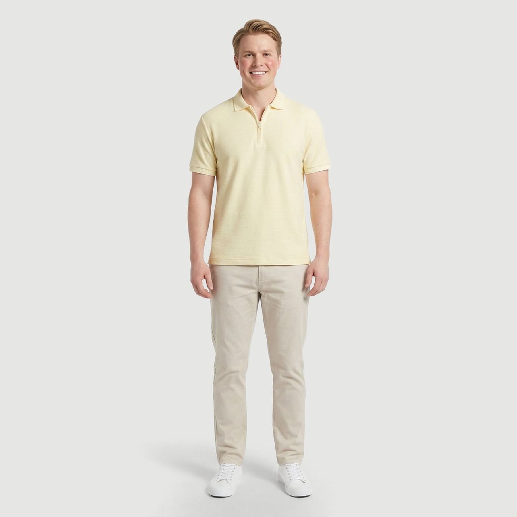 Camisa Masc Manga Curta Malha Canelada Creme - Id Jovem