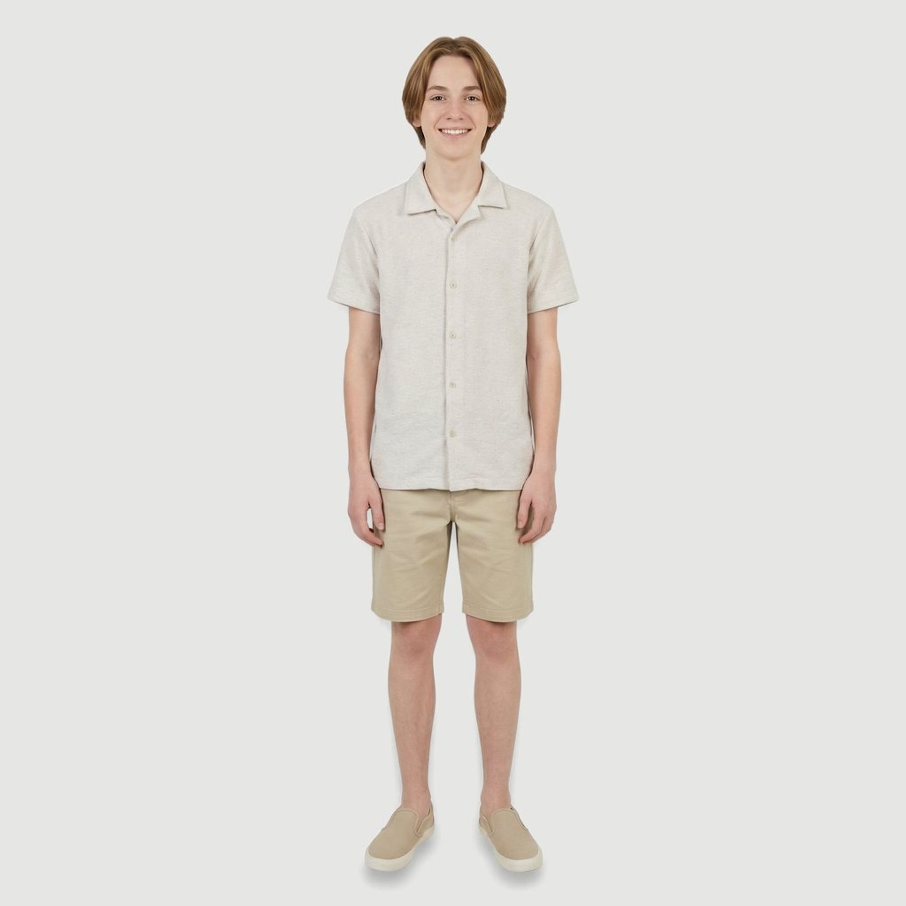 Camisa Masc Manga Curta Malha Canelada Creme - Id Jovem