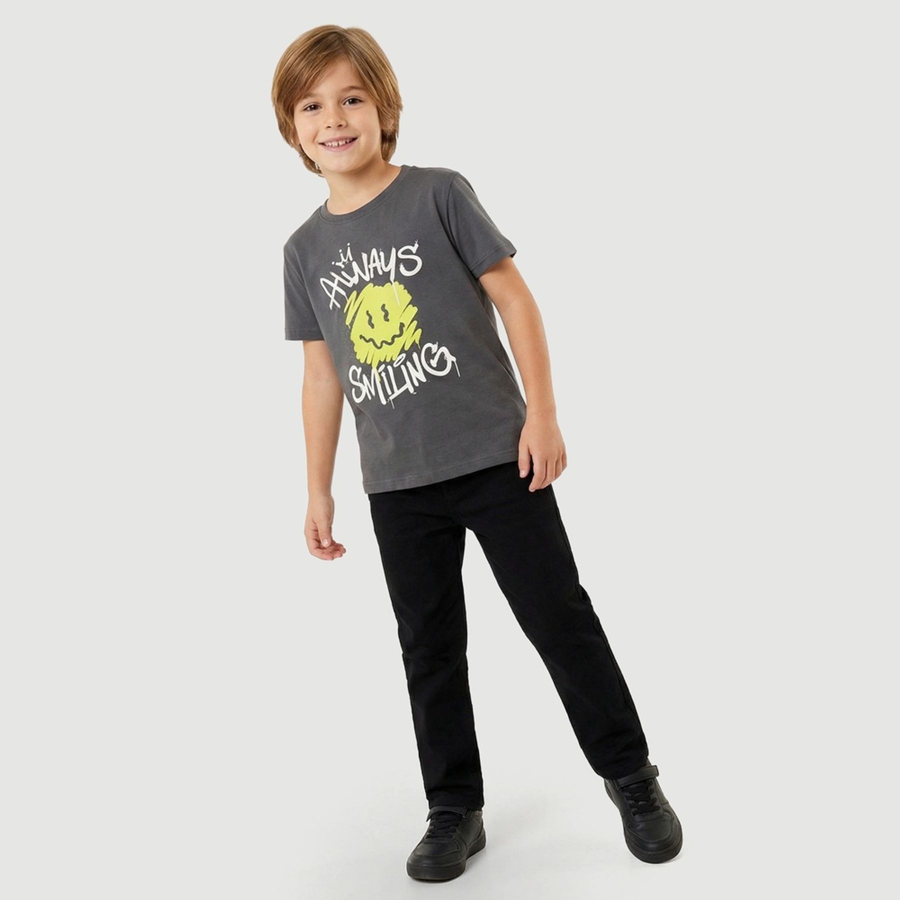Economia de R$ 2,00A camiseta infantil Yeapp é uma peça básica e versátil para compor combinações confortáveis em diferentes momentos. Com manga curta e gola careca (redonda), tem visual liso na cor cinza, fácil de combinar com bermudas, calças e tênis.