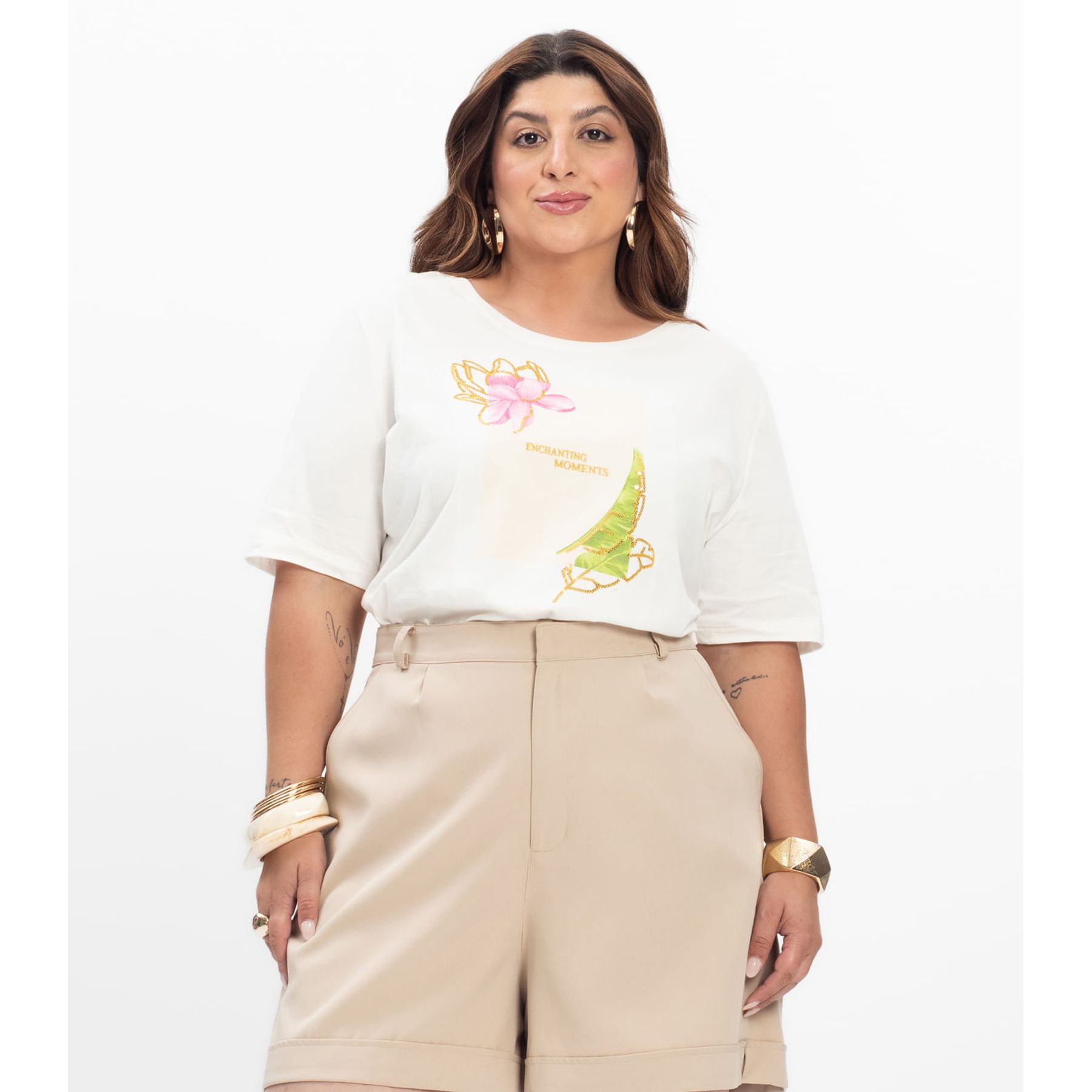Blusa Manga Curta Feminina Plus Size Secret Glam Bege