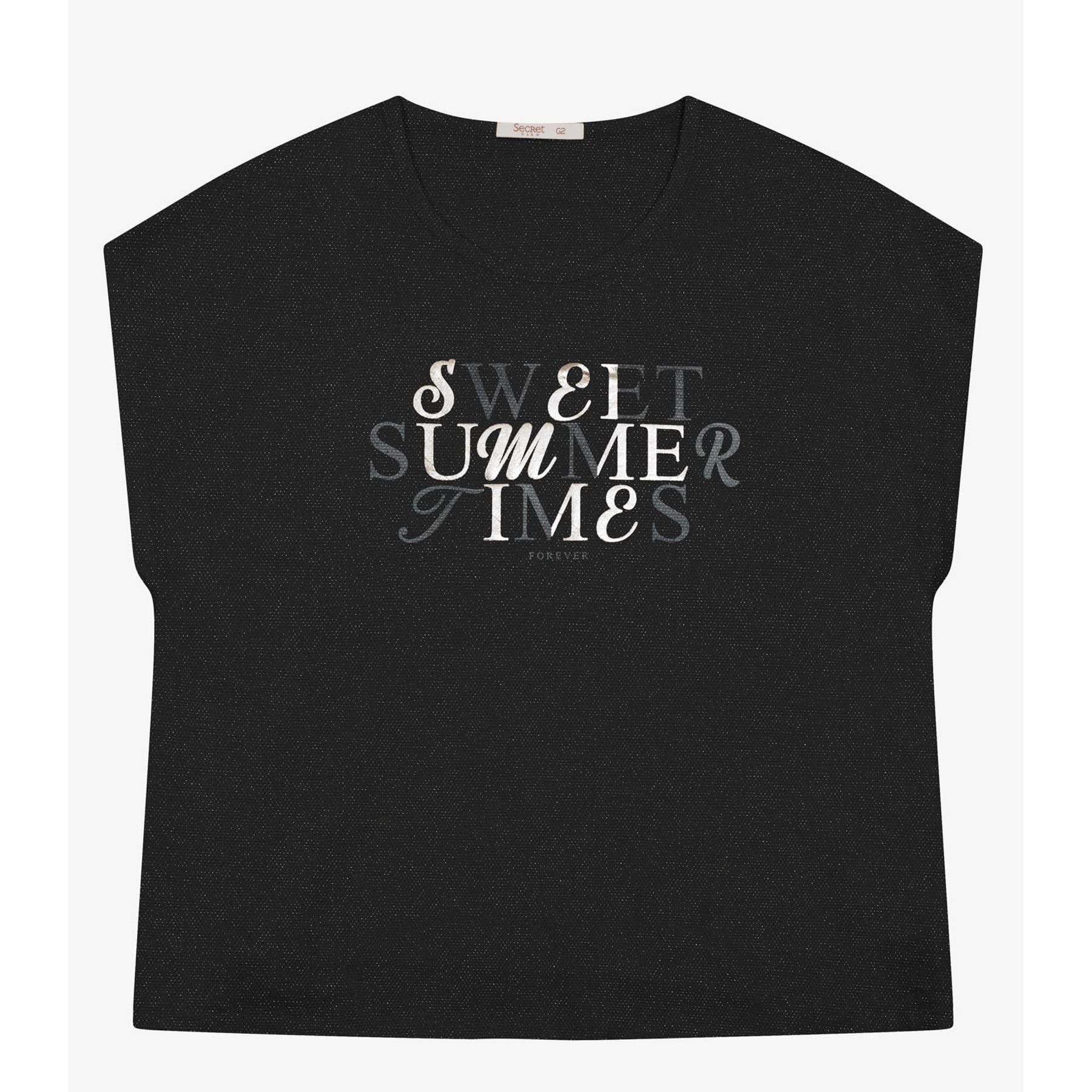 Camiseta Feminina Meia Malha Manga Fluída Rovitex Preto