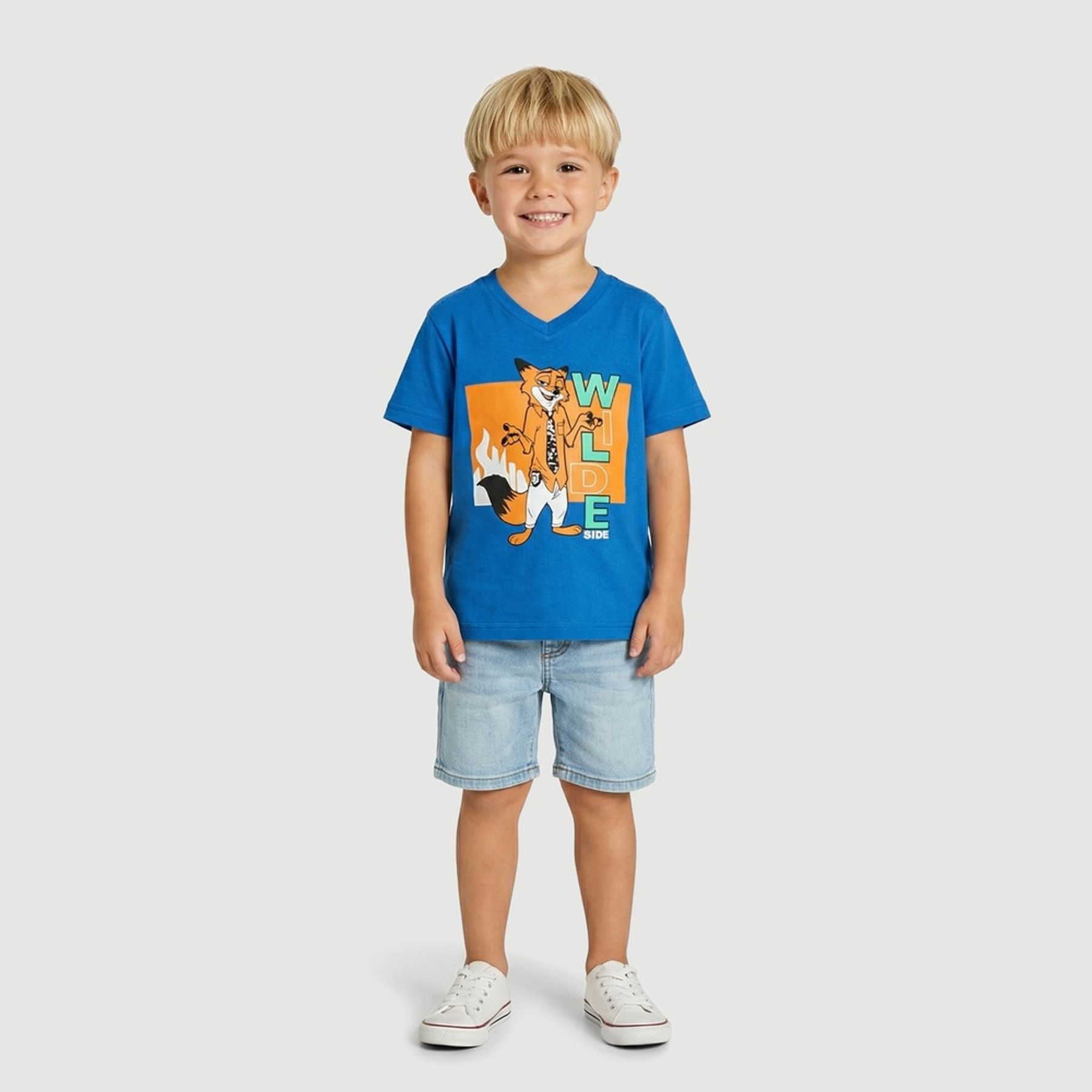Camiseta Zootopia Manga Curta Estampa Nick Wilde Azul - Disney