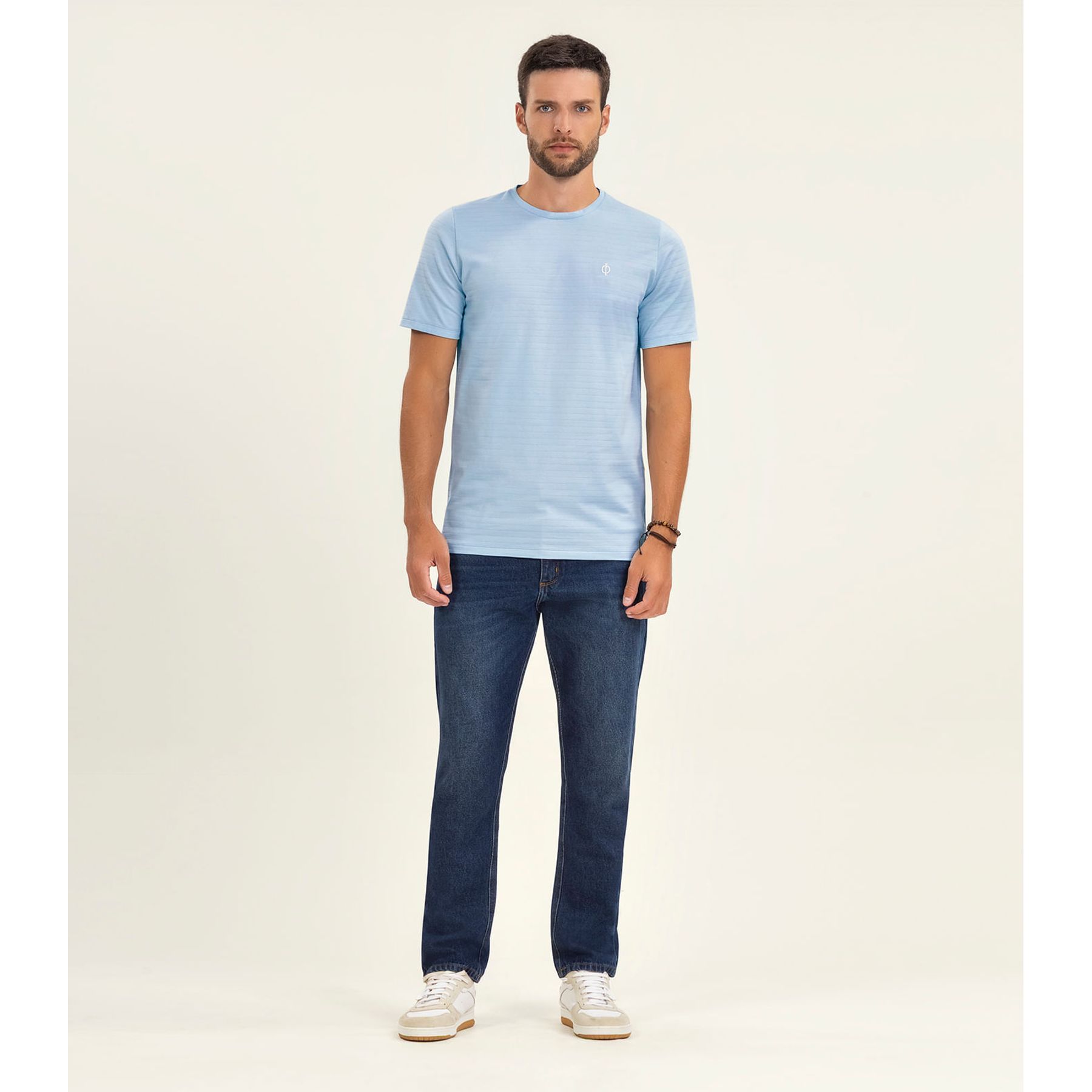 Camiseta Masculina Manga Curta Listrada Azul - Id Casual