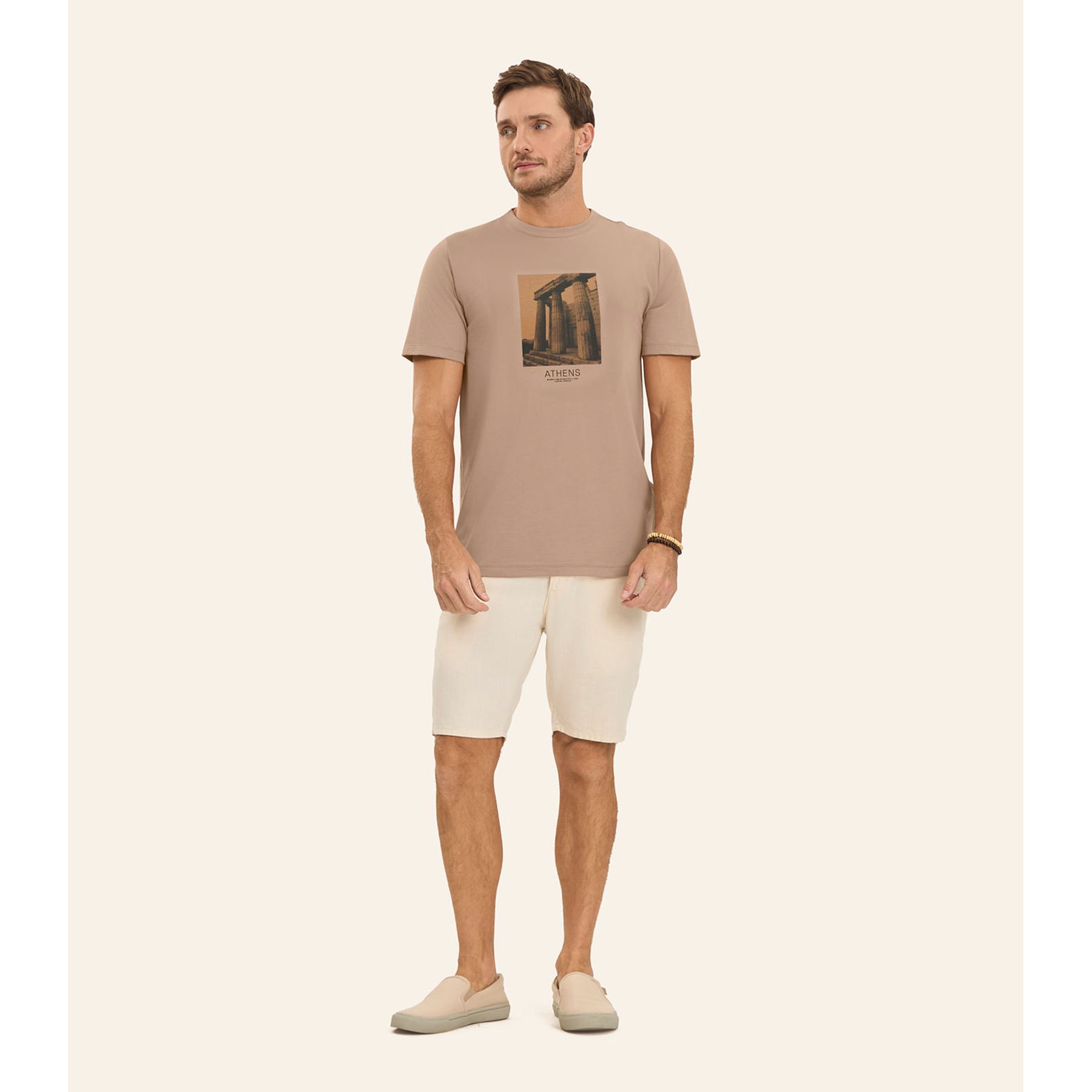 Camiseta Manga Curta Estampado Marrom - Id Casual
