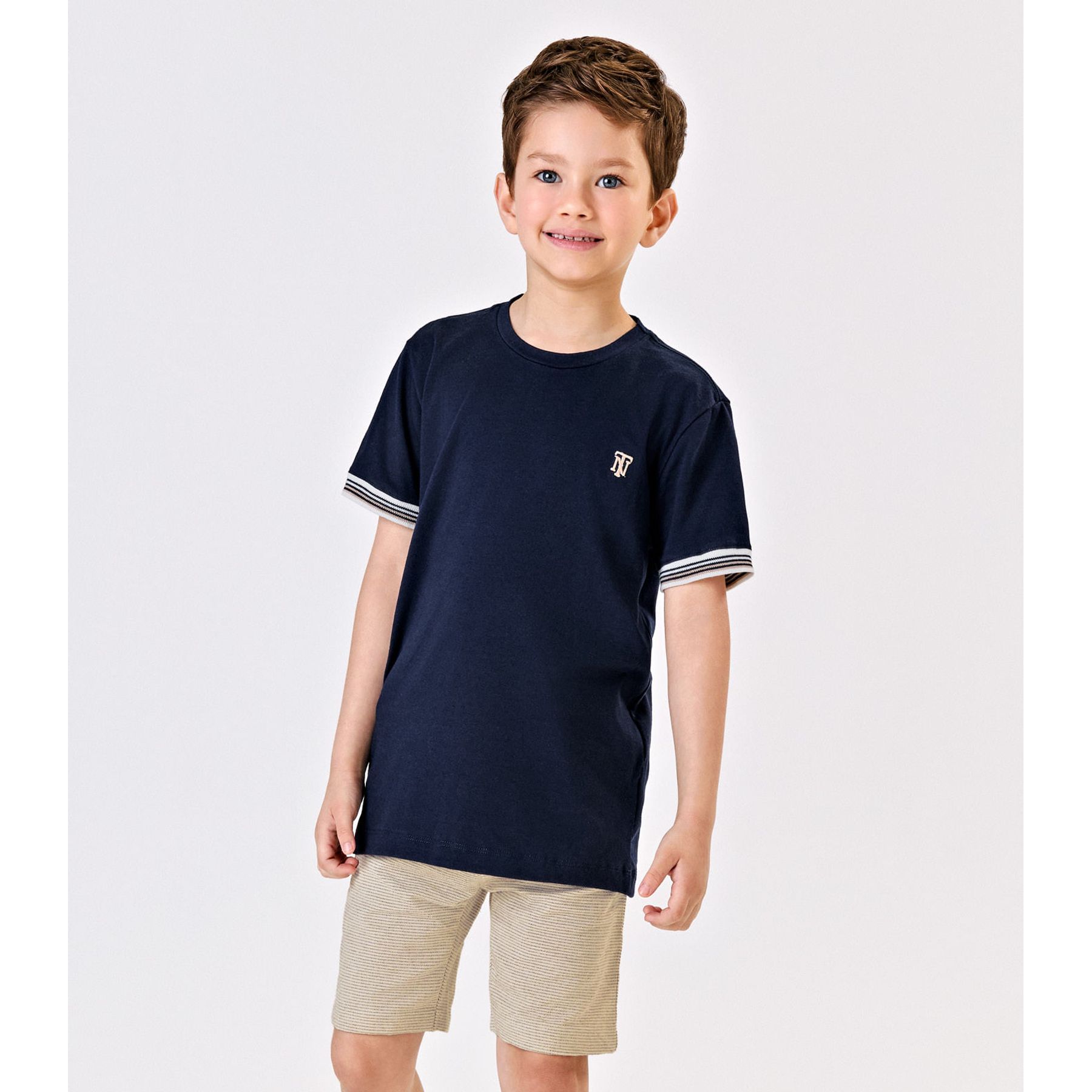 Camiseta Menino em Meia Malha Trick Nick Bege