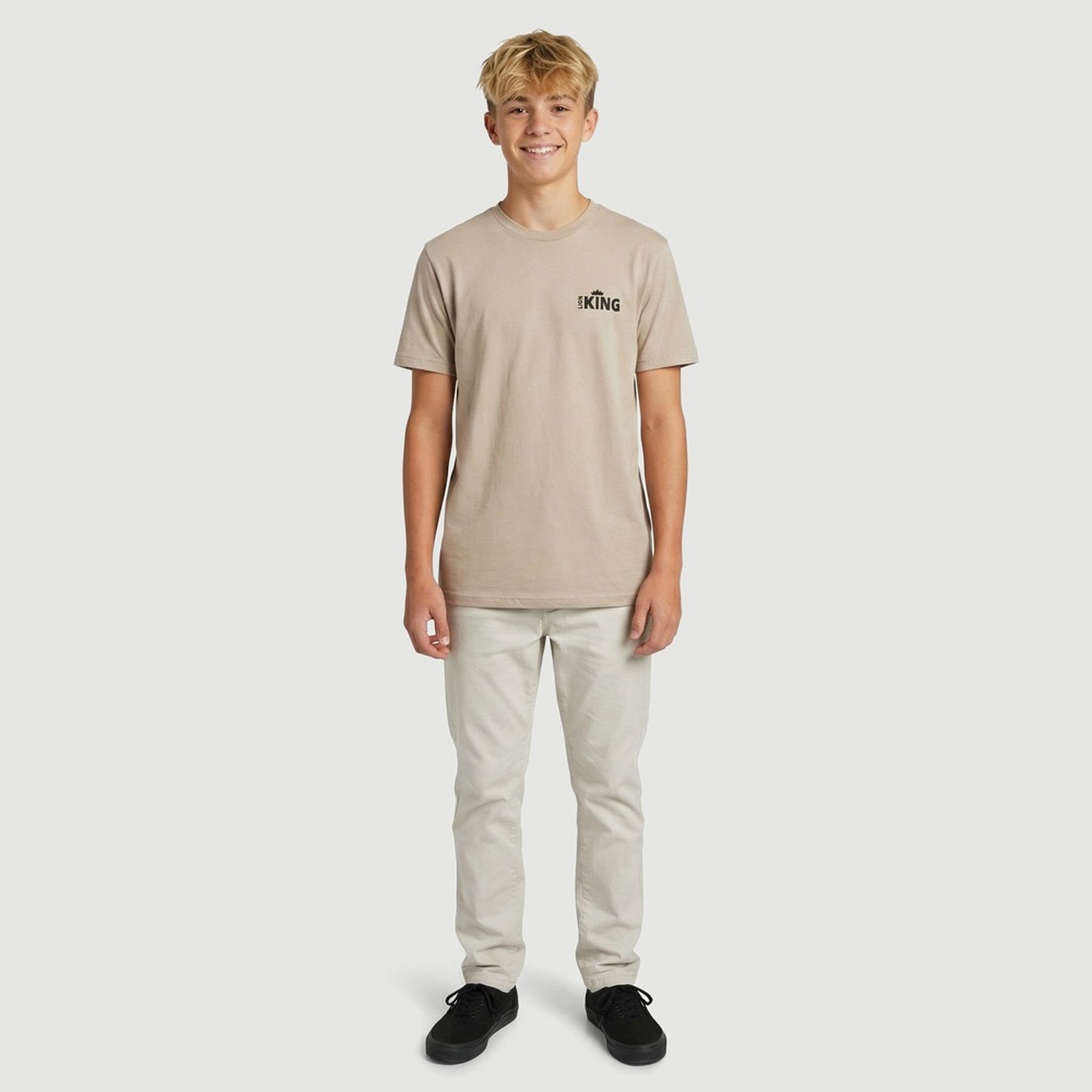 Economia de R$ 5,00Camiseta masculina Disney confeccionada em malha 100% algodão, em tom bege e visual minimalista. A estampa pequena no lado esquerdo do peito traz o texto “LION KING” em preto com coroa, adicionando um toque discreto e licenciado ao look.