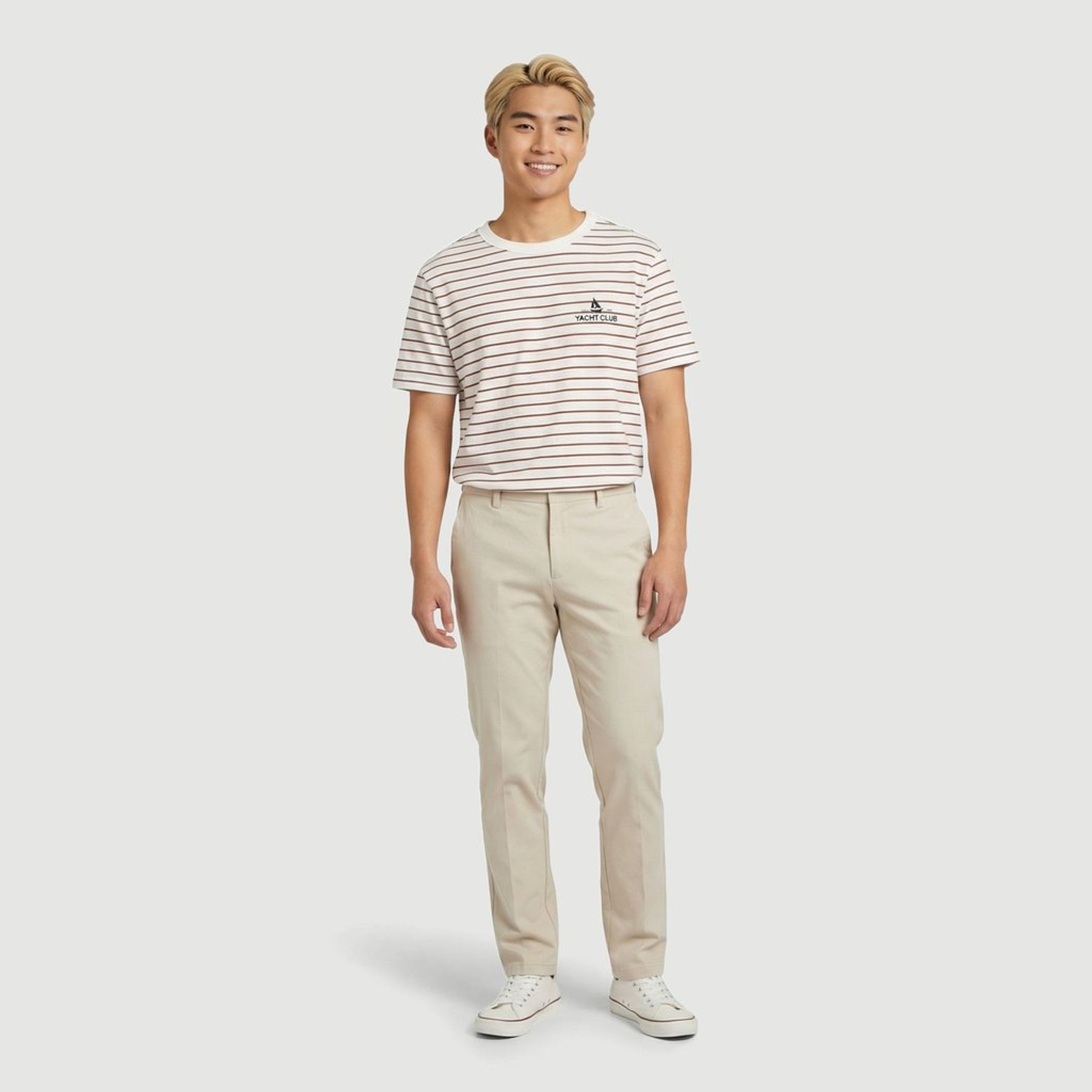 Camiseta Masculina Manga Curta Tricot Bege - Id Casual