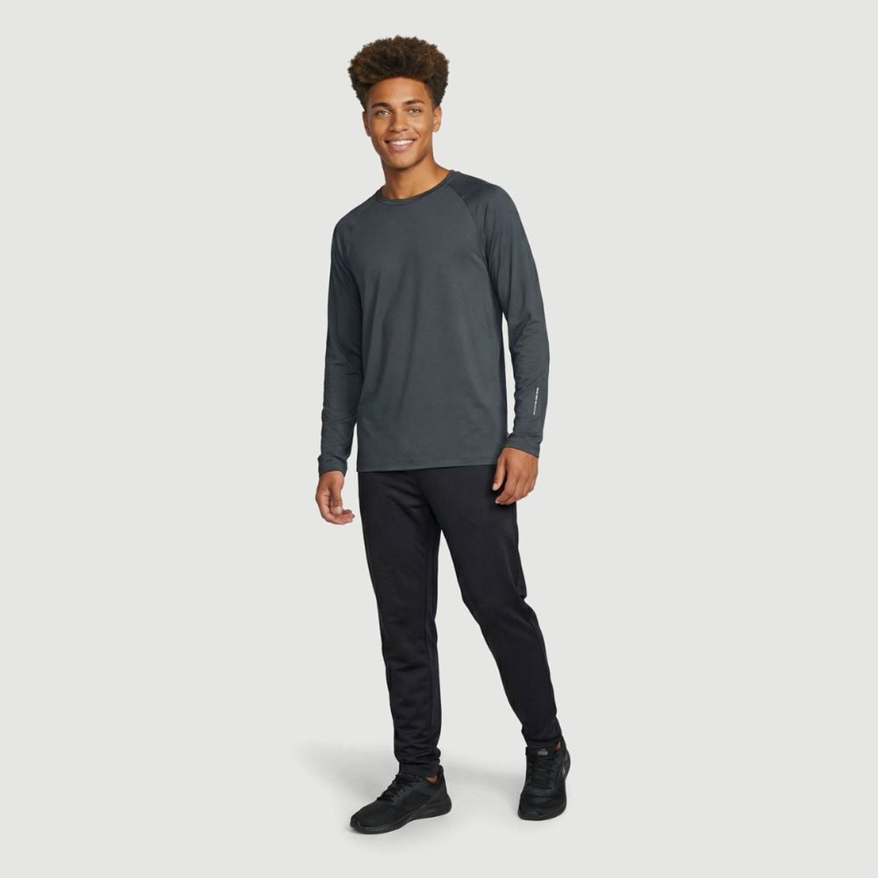 Confeccionada em malha sintética com predominância de poliéster e elastano, oferece conforto, flexibilidade e boa mobilidade. Possui gola redonda, punhos com acabamento simples, detalhe discreto de escrita/logotipo na manga e proteção UV, ideal para uso ao ar livre.