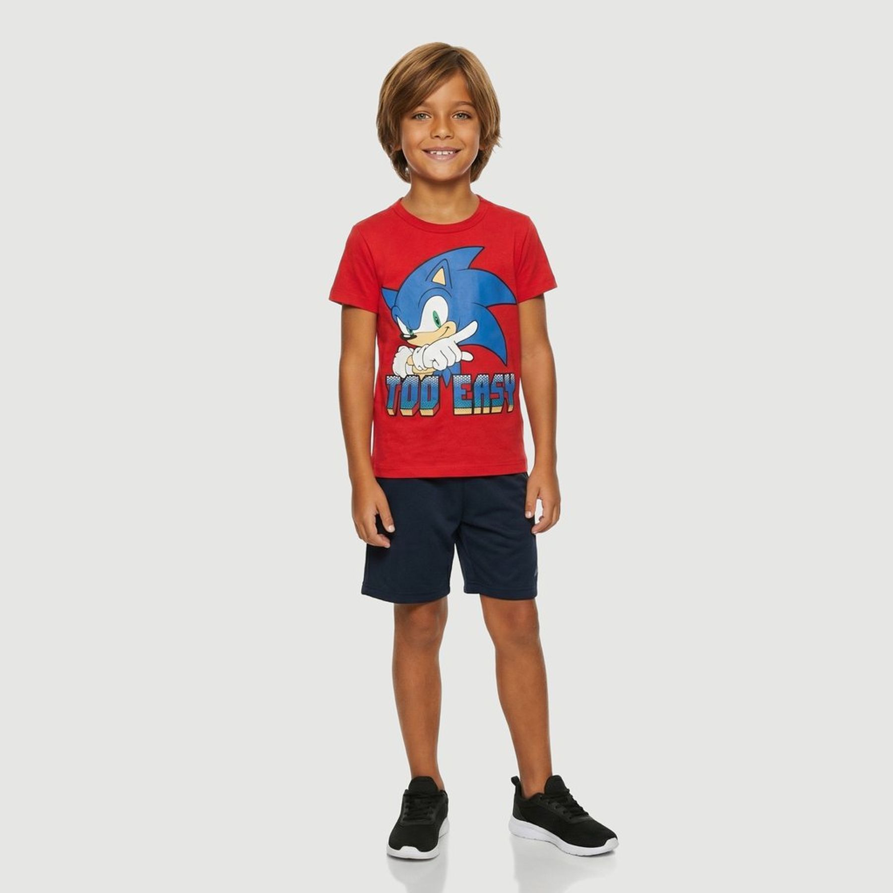 Traz estampa frontal grande e centralizada do personagem Sonic com a frase “TOO EASY”, além de gola redonda e modelagem prática para o uso diário. Produto licenciado Sonic. Conteúdo da embalagem: 1 camiseta.