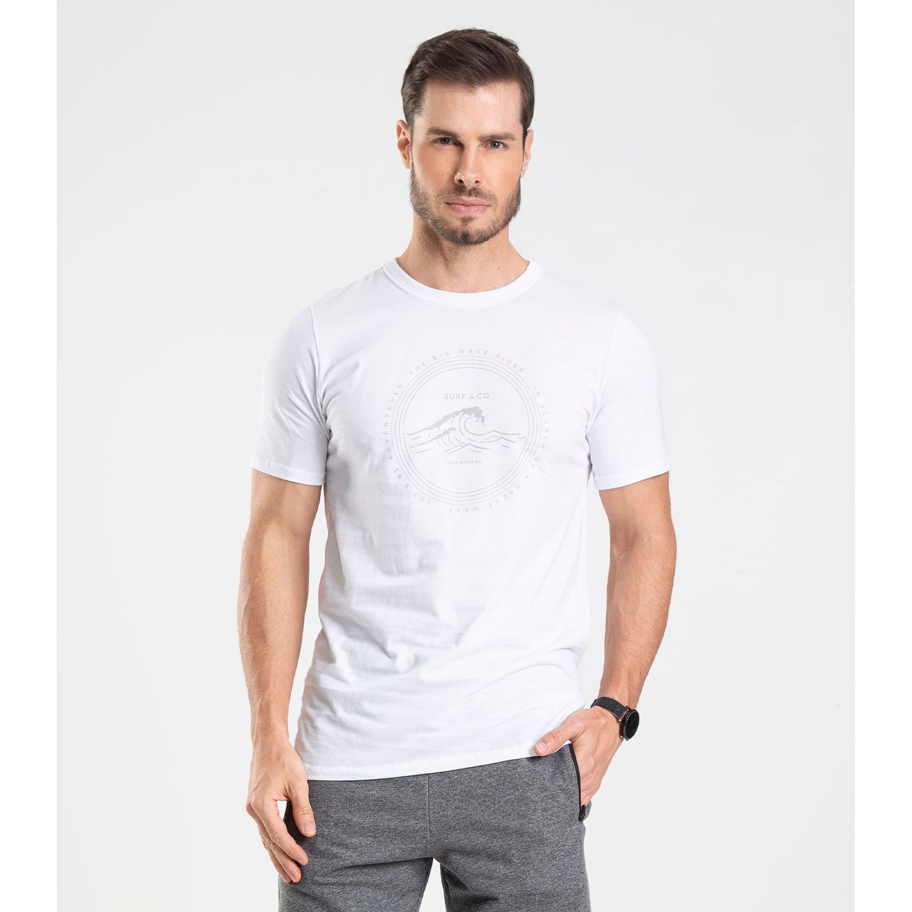 Camiseta Masculina Manga Curta Com Estampa Creme - Id Casual