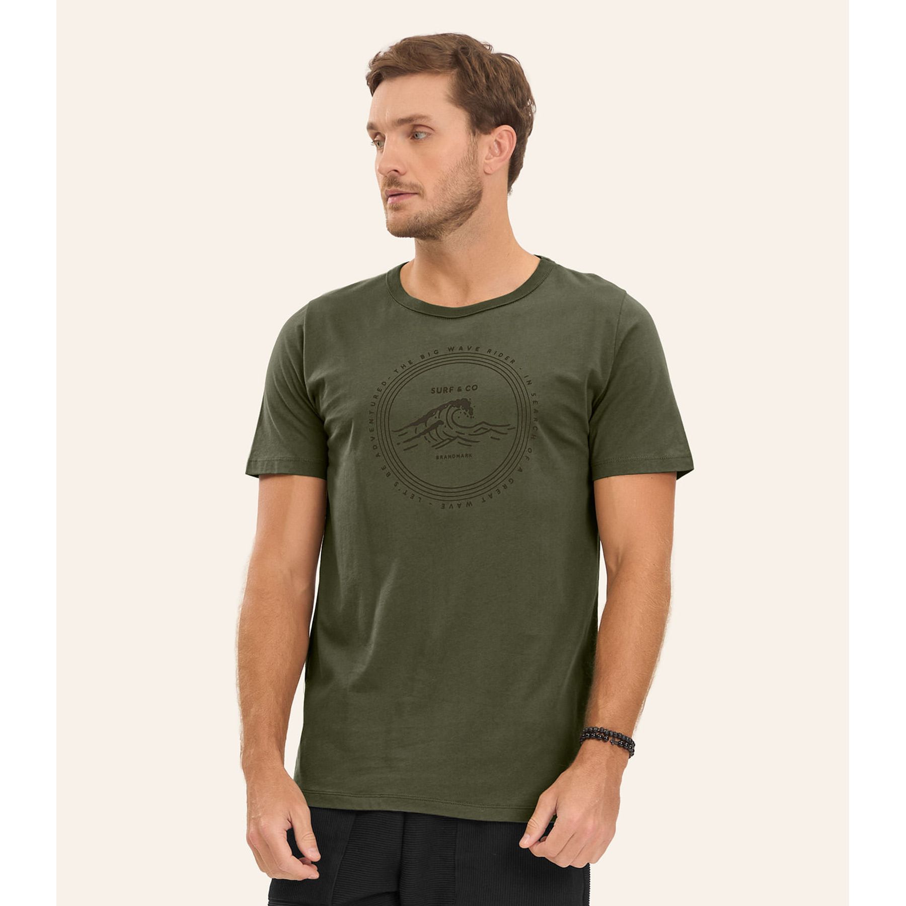 Camiseta Meia Malha Masculina Diametro Bege