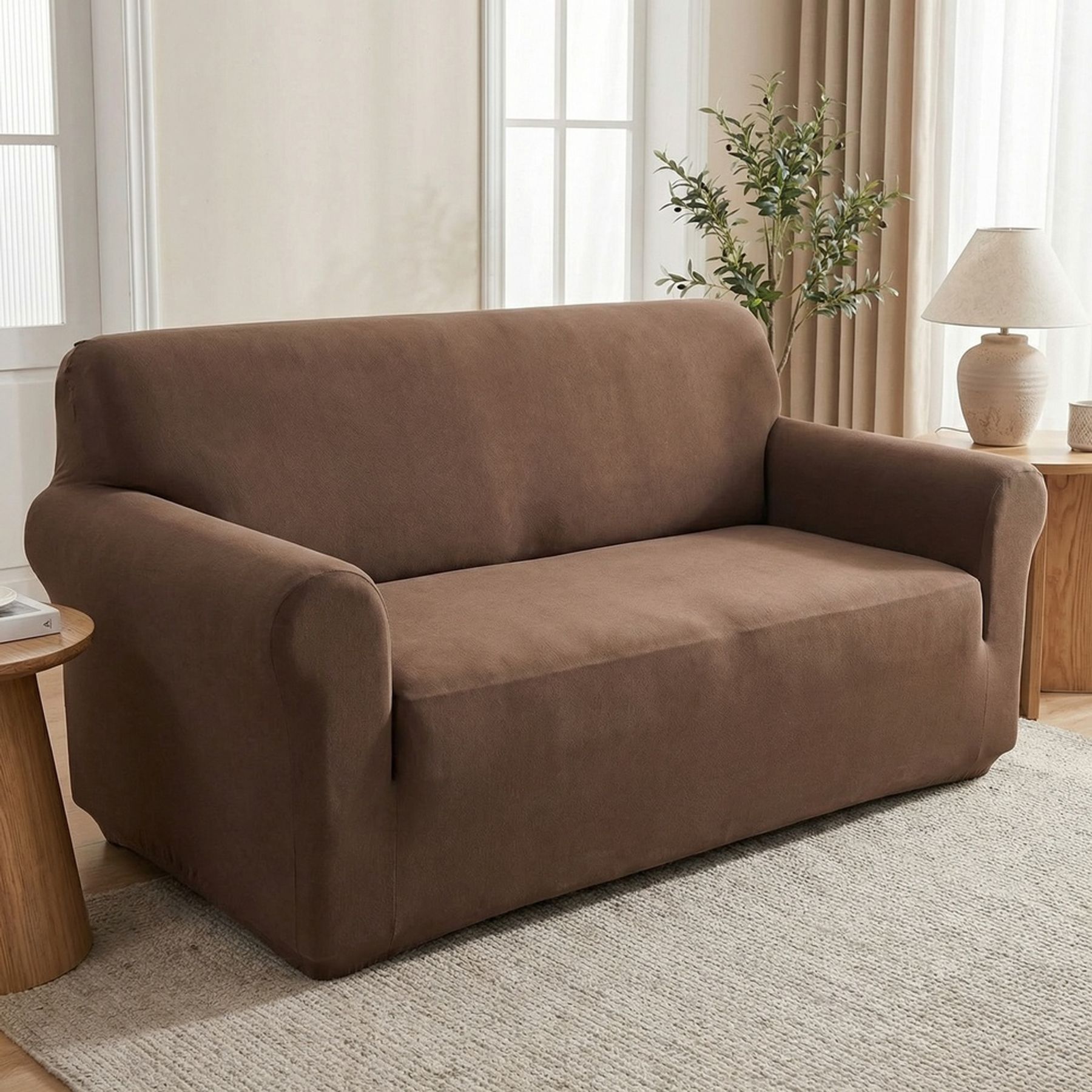 Economia de R$ 14,00A capa para sofá de 2 lugares canelada na cor marrom é ideal para ajudar a proteger o estofado e manter a sala com aparência bem cuidada. O visual liso com textura canelada discreta em linhas finas oferece um acabamento minimalista que combina com diferentes estilos de decoração.