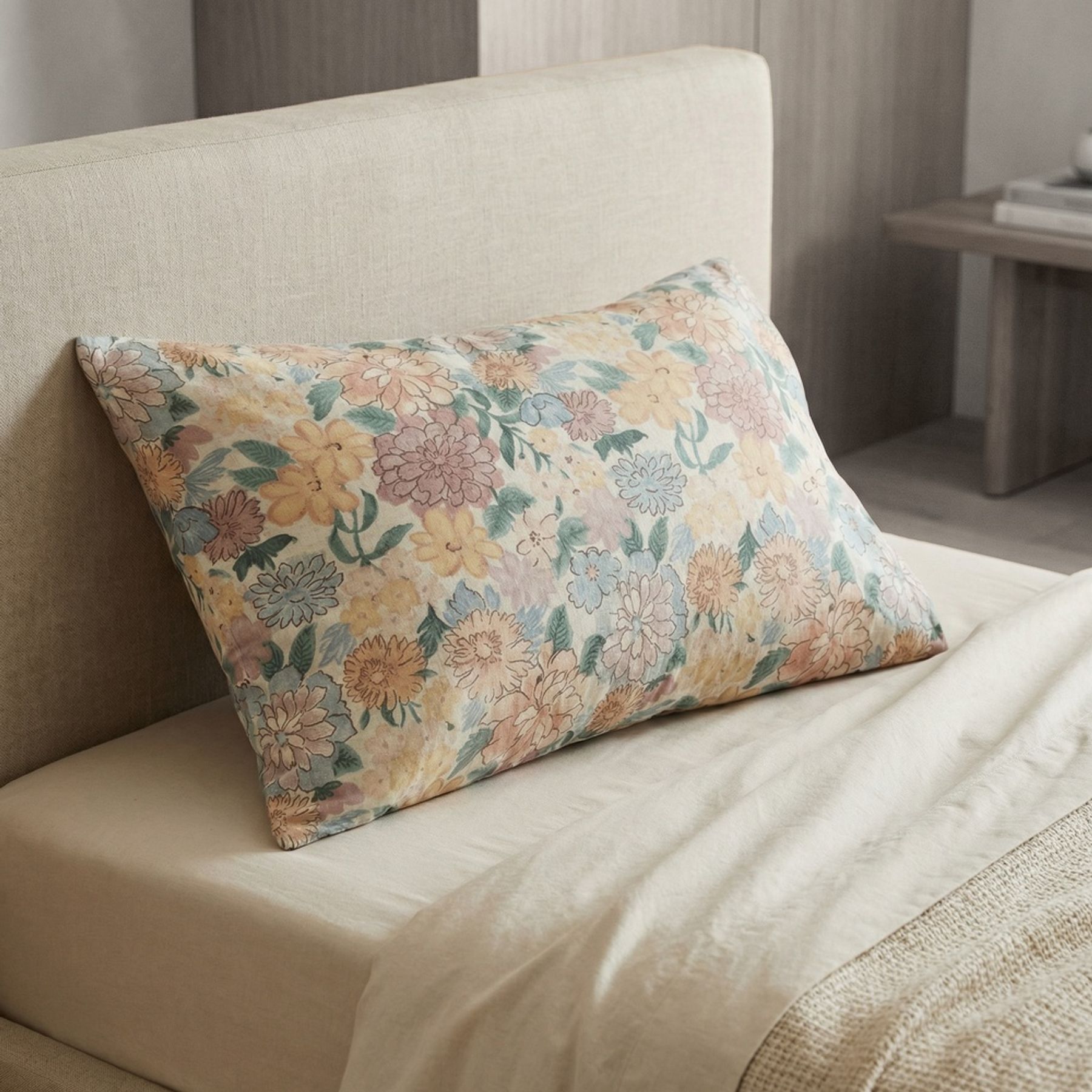 Porta-Travesseiro Retangular Floral Bege - Oliveira Lopes