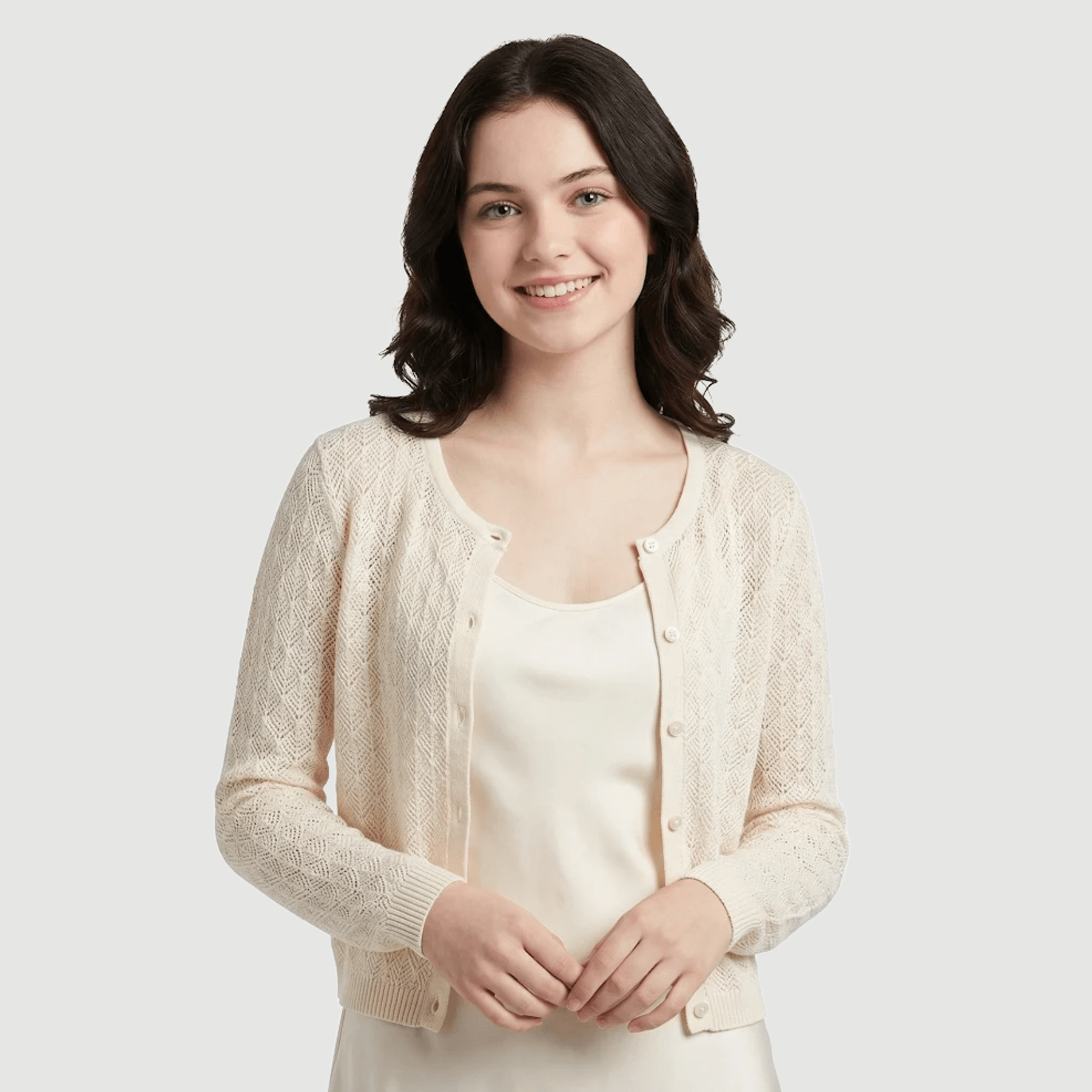 Cardigan Feminino Plus Size Em Tricot Secret Glam Bege