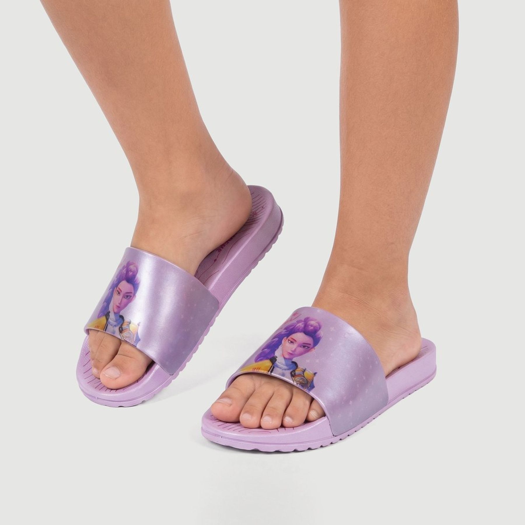 Chinelo Slide Flip Arco iris Cristal Gliter Estampado Lilás - PNB