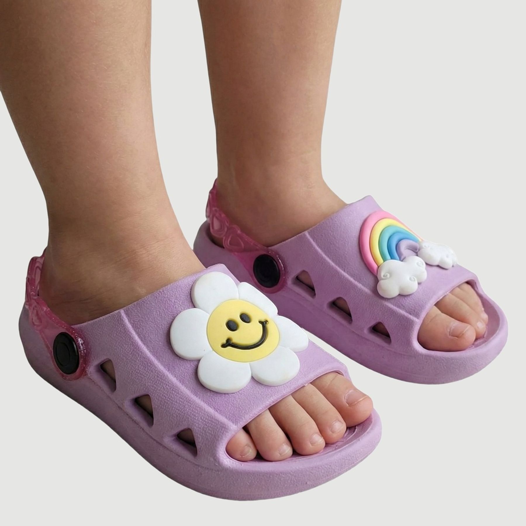 Chinelo Slide Flip Arco iris Cristal Gliter Estampado Lilás - PNB