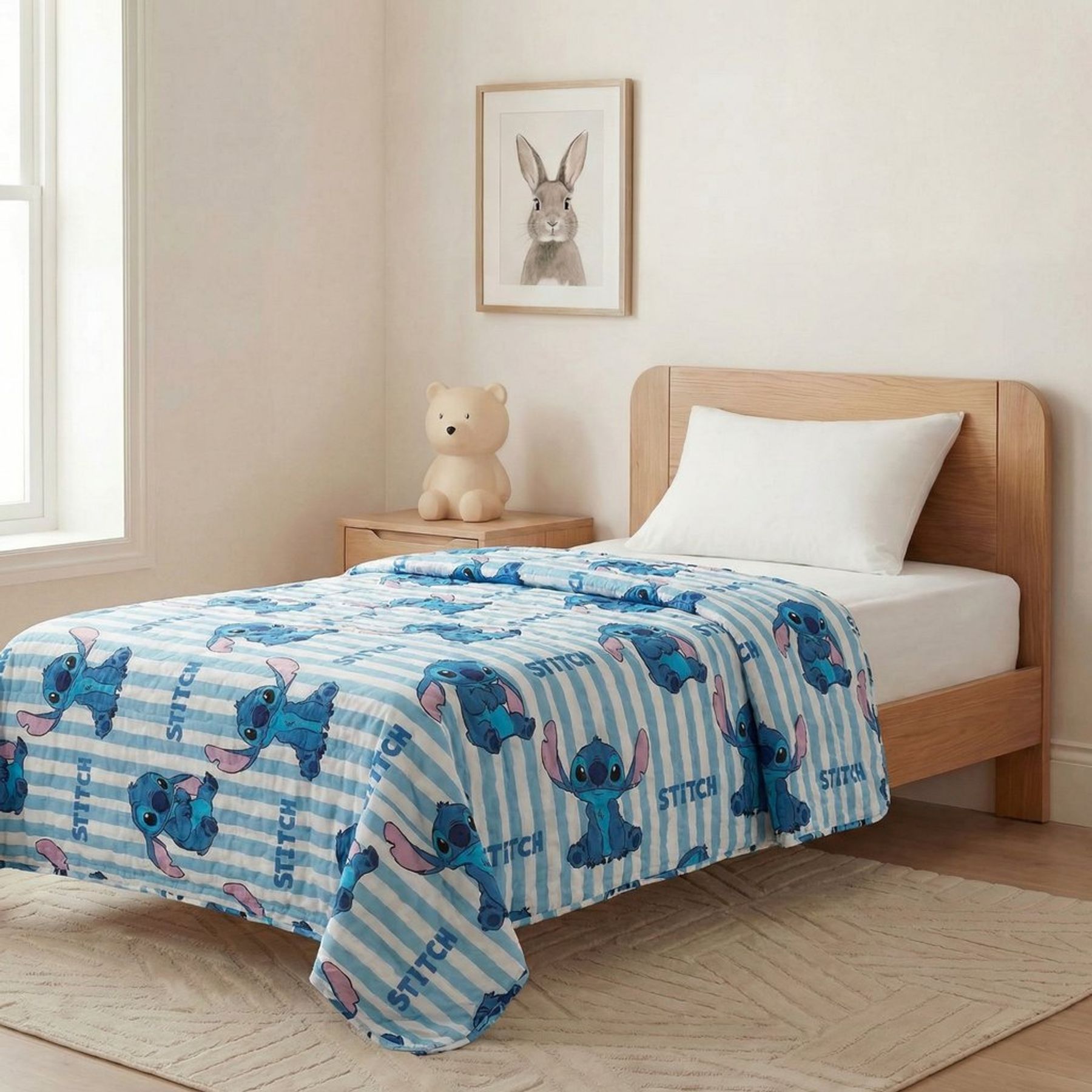 Economia de R$ 8,00A colcha soft Disney Stitch é ideal para deixar o quarto infantil mais alegre e aconchegante. Com costuras matelassadas, traz estampa do personagem Stitch (Lilo & Stitch) com listras horizontais e a escrita “STITCH” em repetição, criando um visual divertido para a cama.