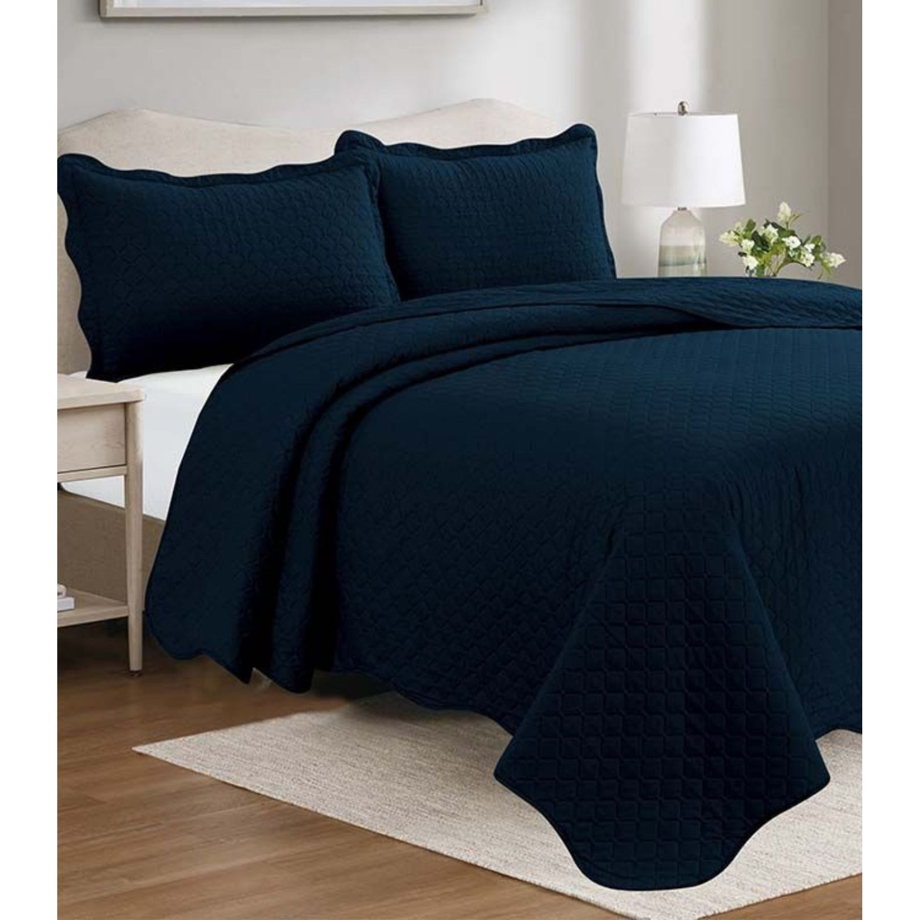 Colcha L/Queen Algodão Lirada Marinho Artesanal