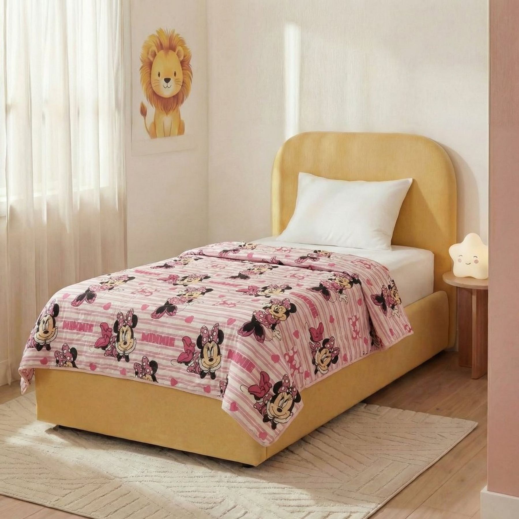 Economia de R$ 8,00A colcha soft Disney Minnie é ideal para compor um quarto infantil aconchegante e temático. Confeccionada em microfibra 100% poliéster, tem toque macio e conta com estampa corrida da Minnie Mouse em tons de rosa e branco, com listras, corações e a palavra “MINNIE”. Possui acabamento com costura nas bordas para um visual bem finalizado na cama. Produto licenciado Disney. Conteúdo da embalagem: 1 colcha.