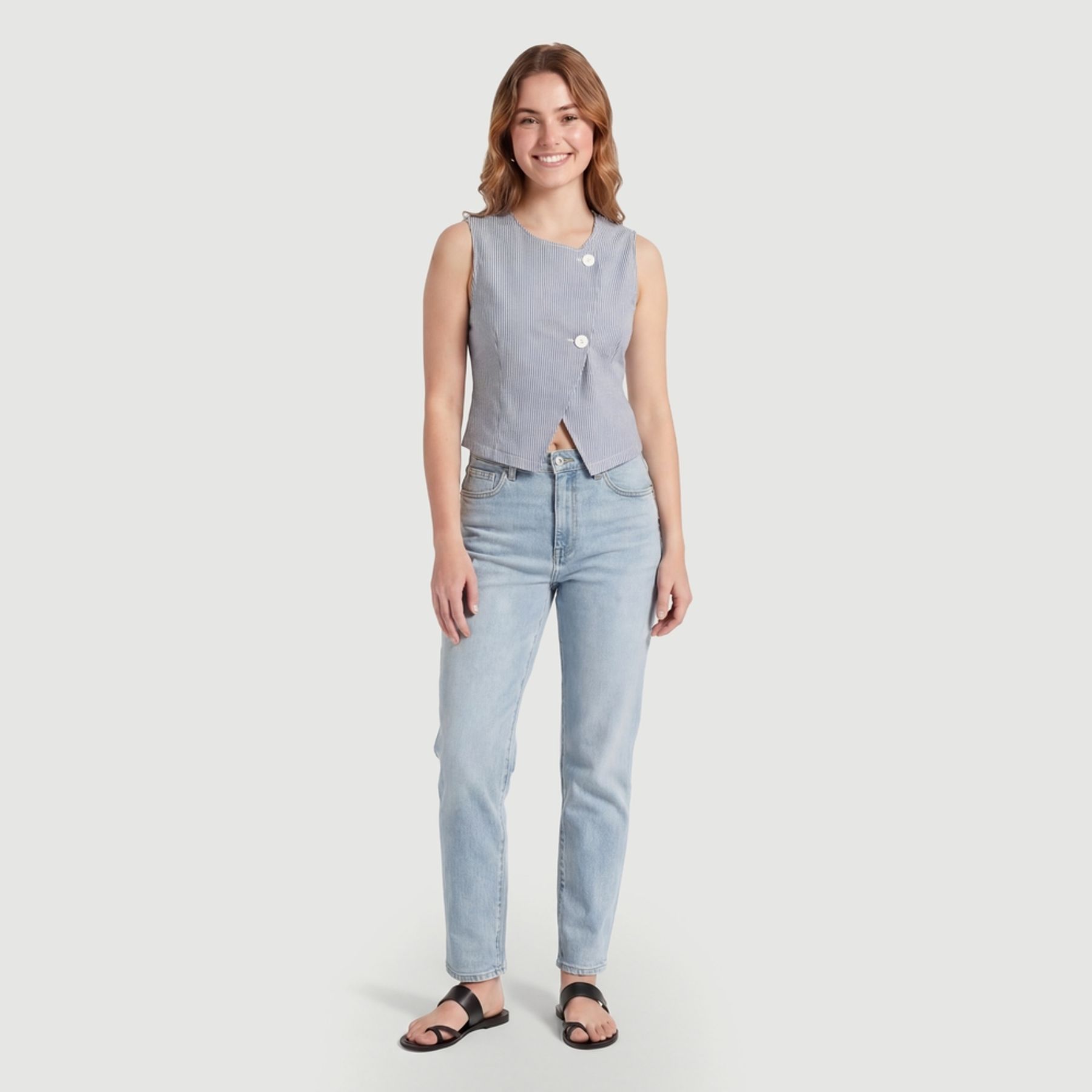 Blusa Feminina Sem Manga Colete Listrada Azul - Ink