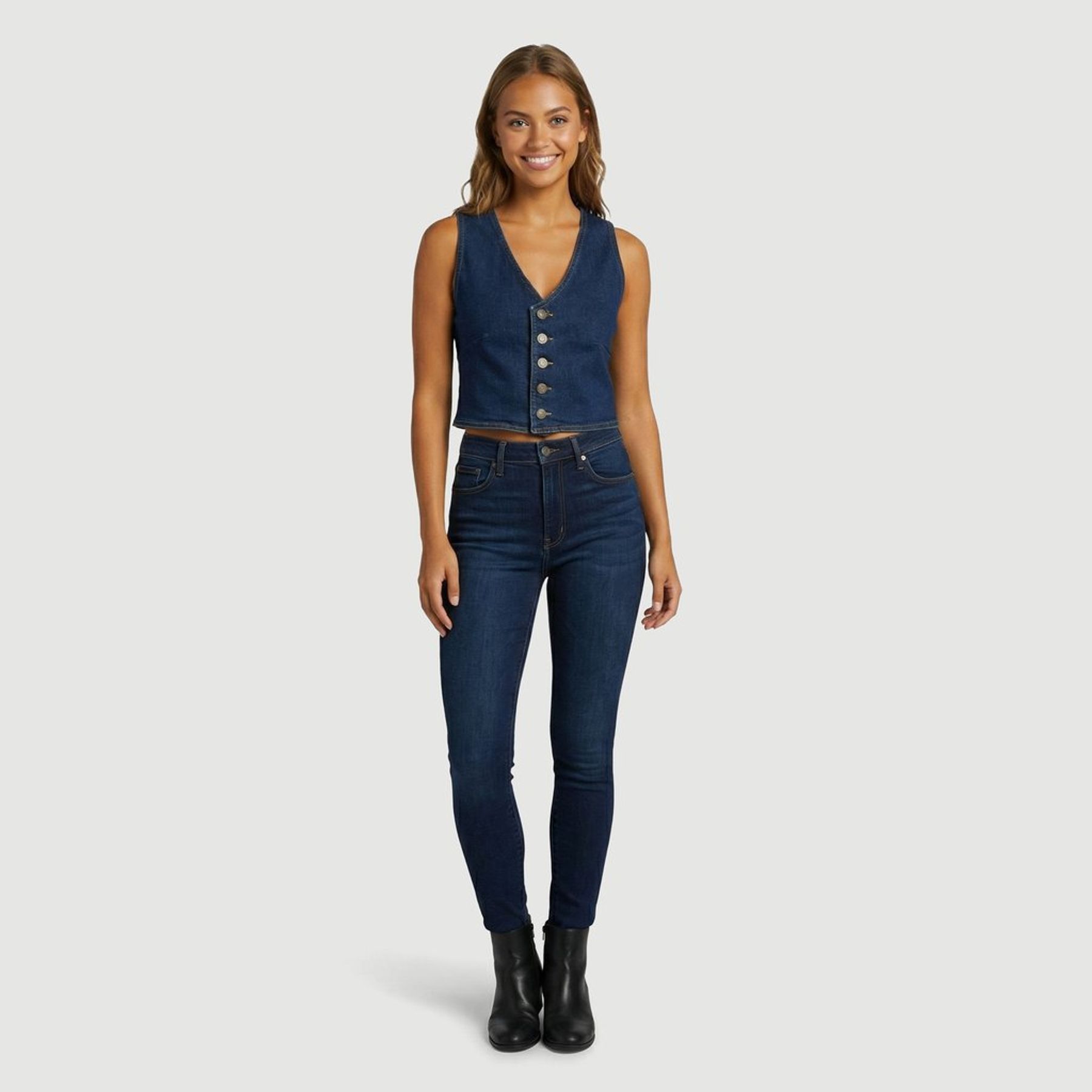 Top Jeans Com Abotoamento Frontal Jeans Medio - INK