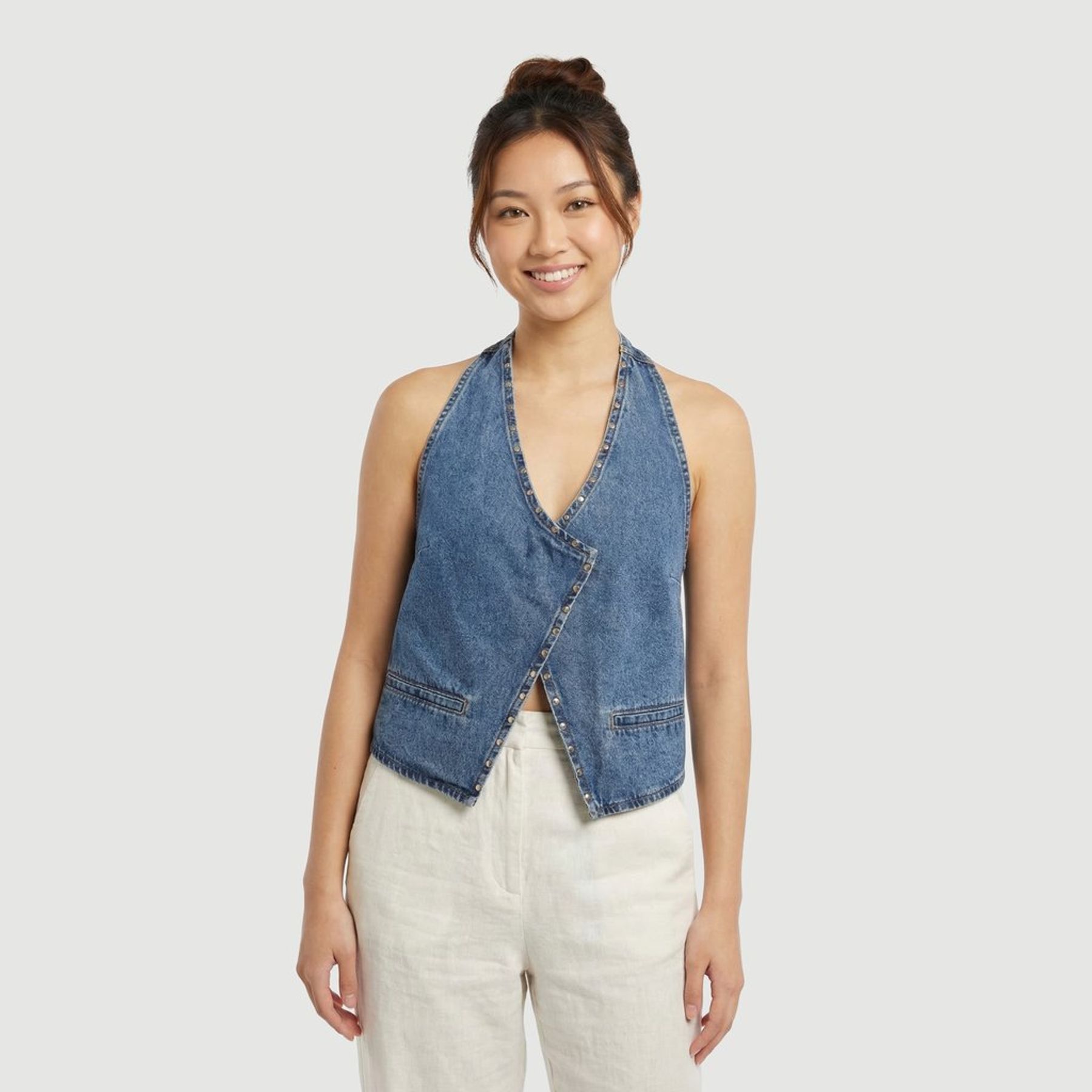 Top Jeans Com Abotoamento Frontal Jeans Medio - INK