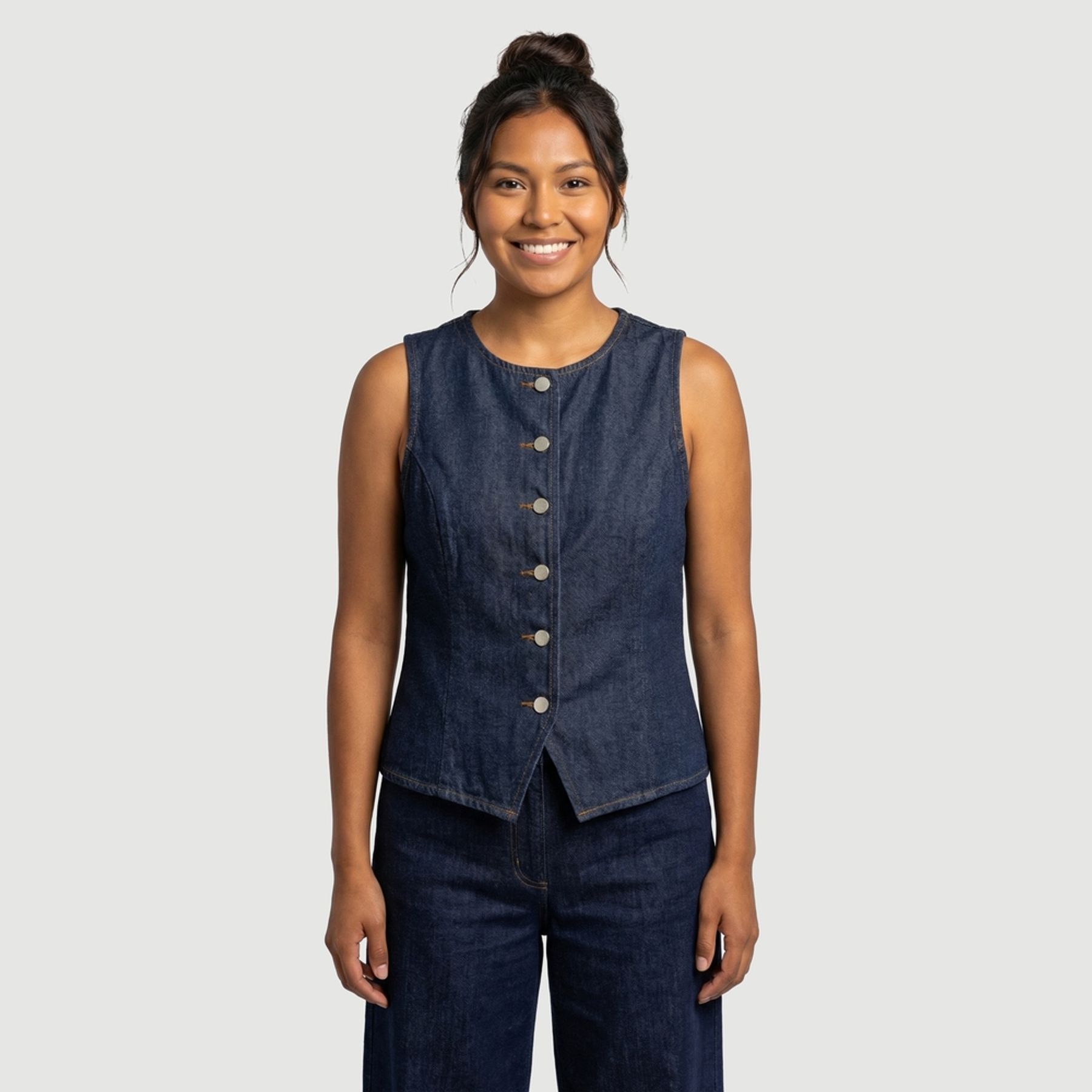 Colete Jeans Feminino S/ Manga Botões Azul Escuro - Sawary