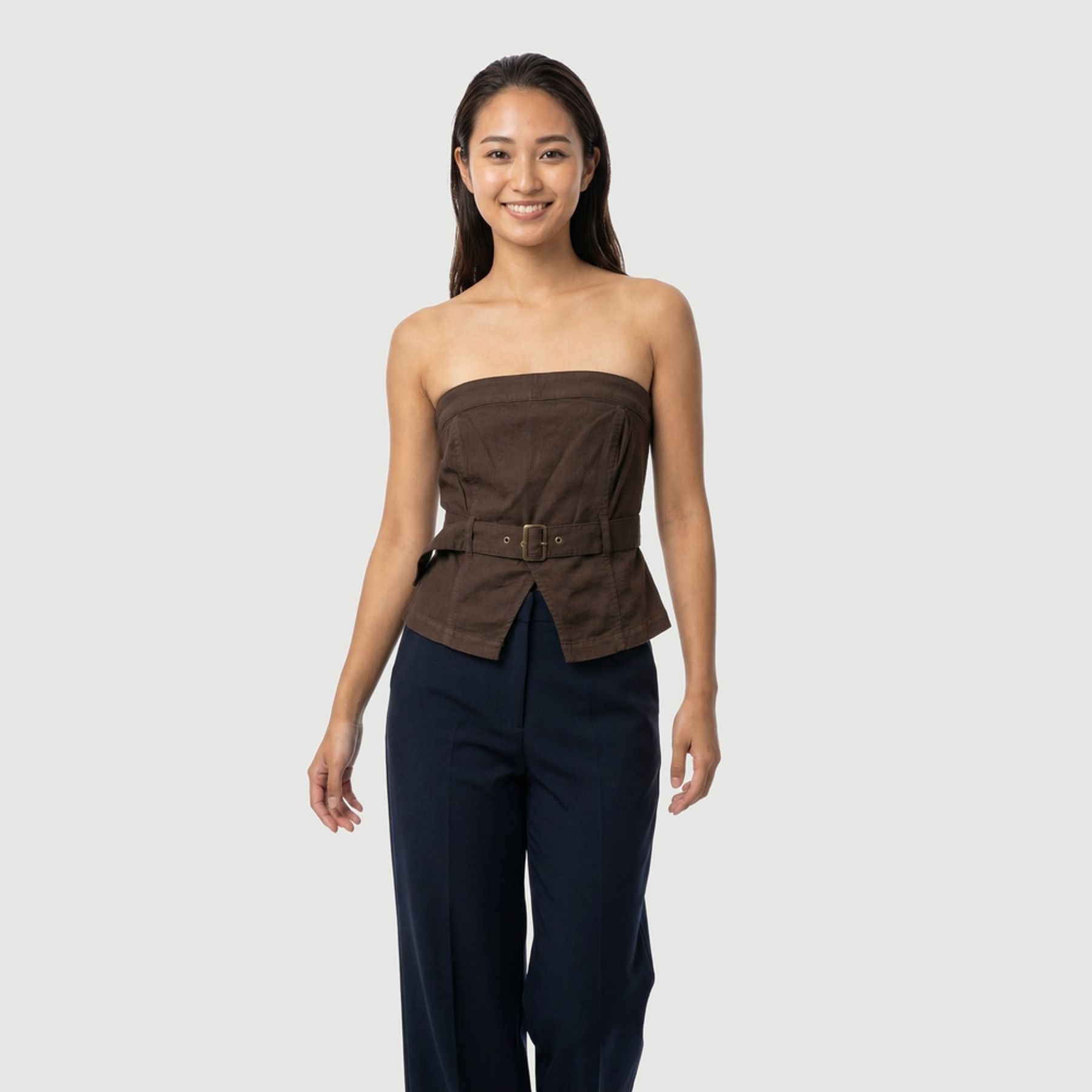 Colete Feminino Jeans Sem Manga com Botões Frontais Marrom - Sawary