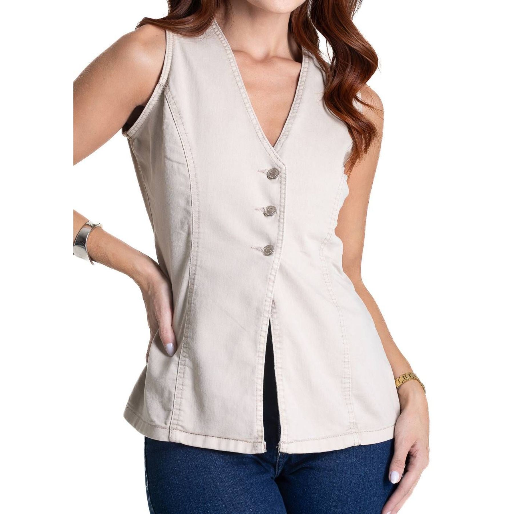 Colete Feminino Jeans Sem Manga com Botões Frontais Marrom - Sawary