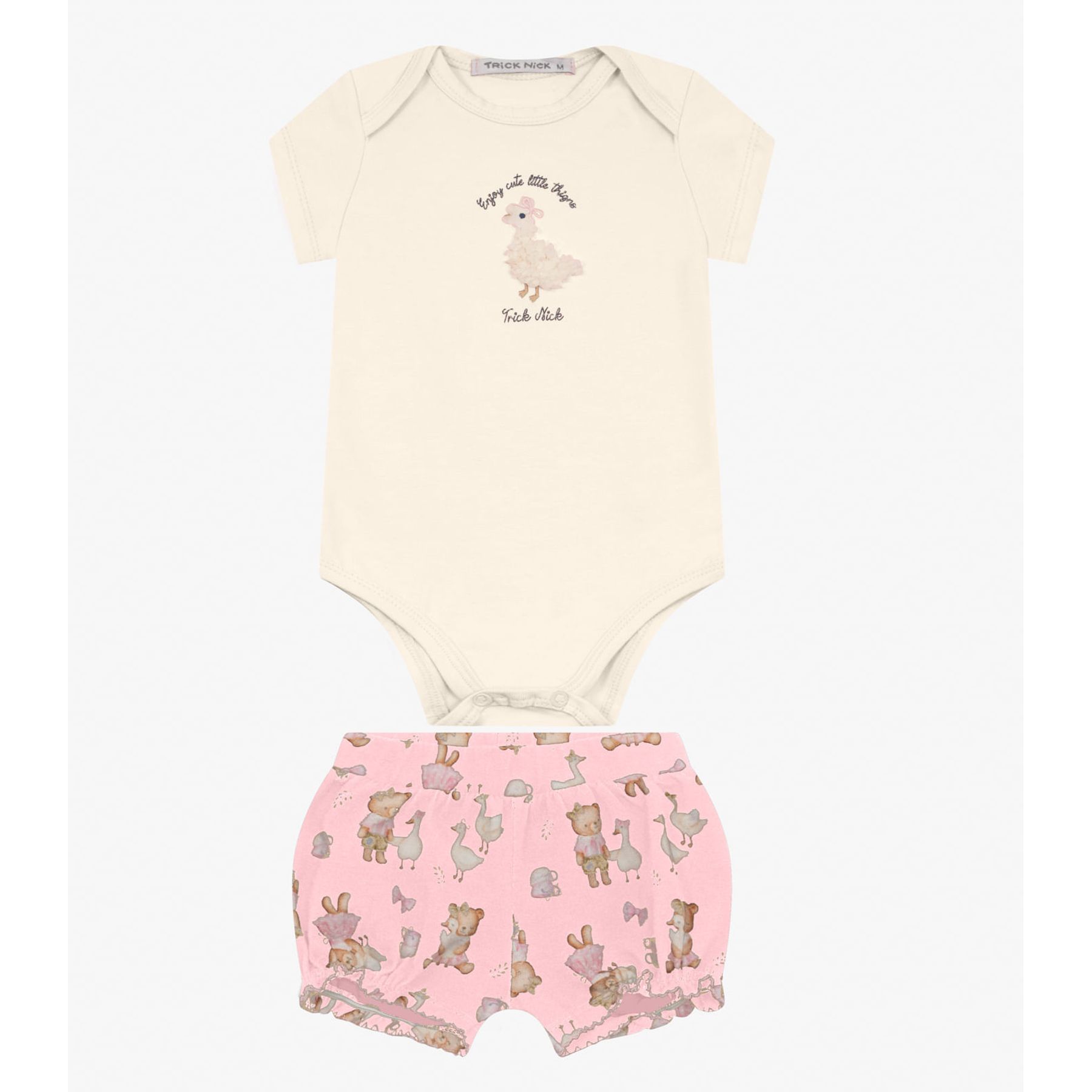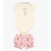 Conjunto Infantil Camiseta E Short com Estampa De Cachorrinhos E Frase Em Creme E Rosa - Toys & Kids