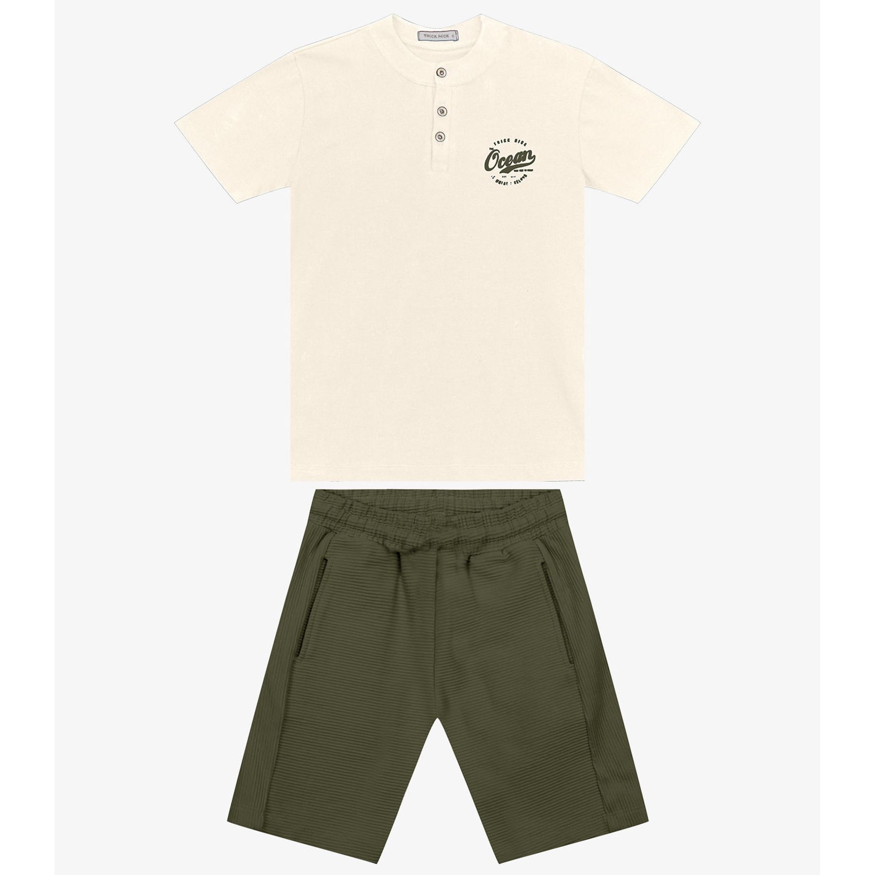 Conjunto Infantil Camiseta Com Bermuda Trick Nick Bege