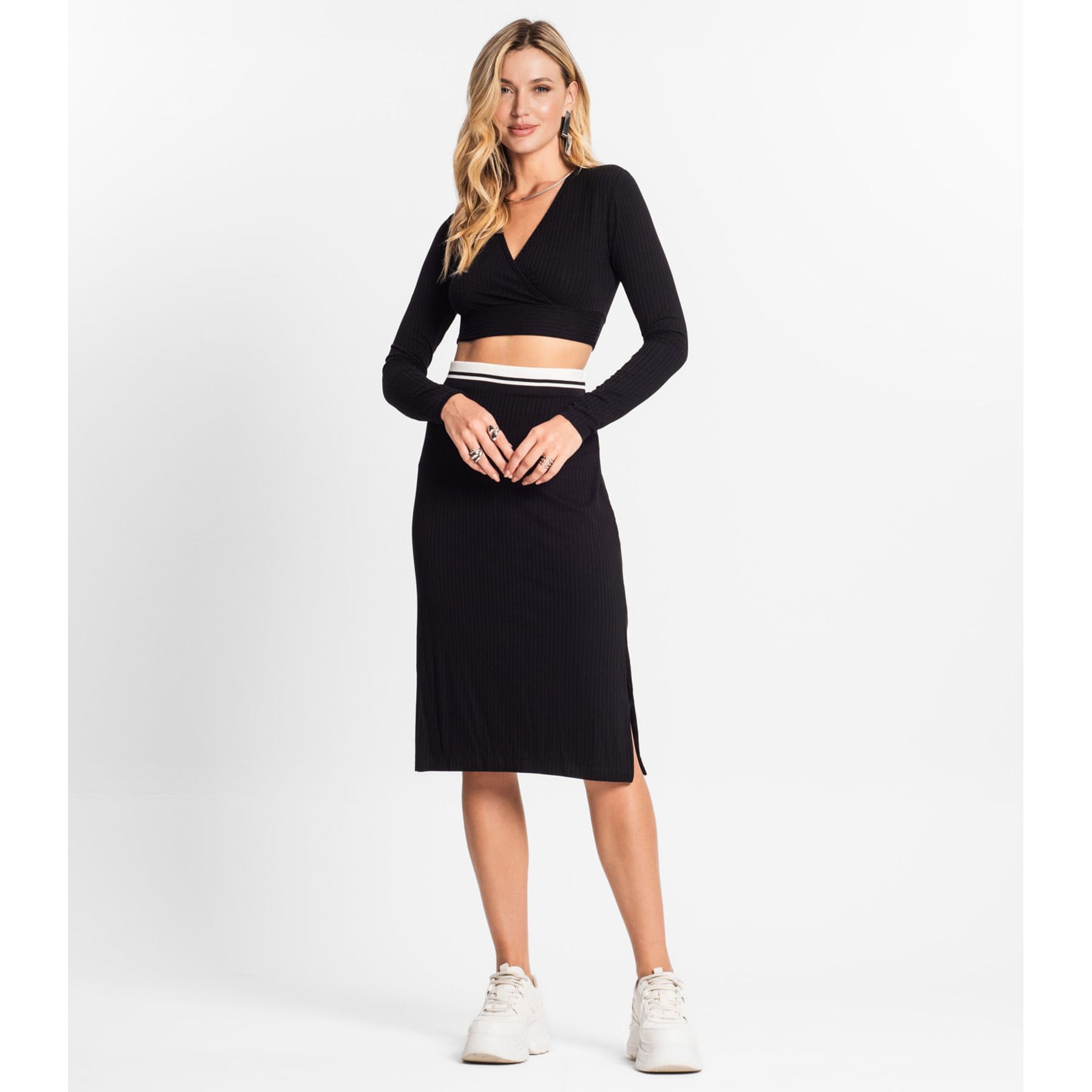 Conjunto Feminino Blusa E Calça Em Ribana Dianna Preto