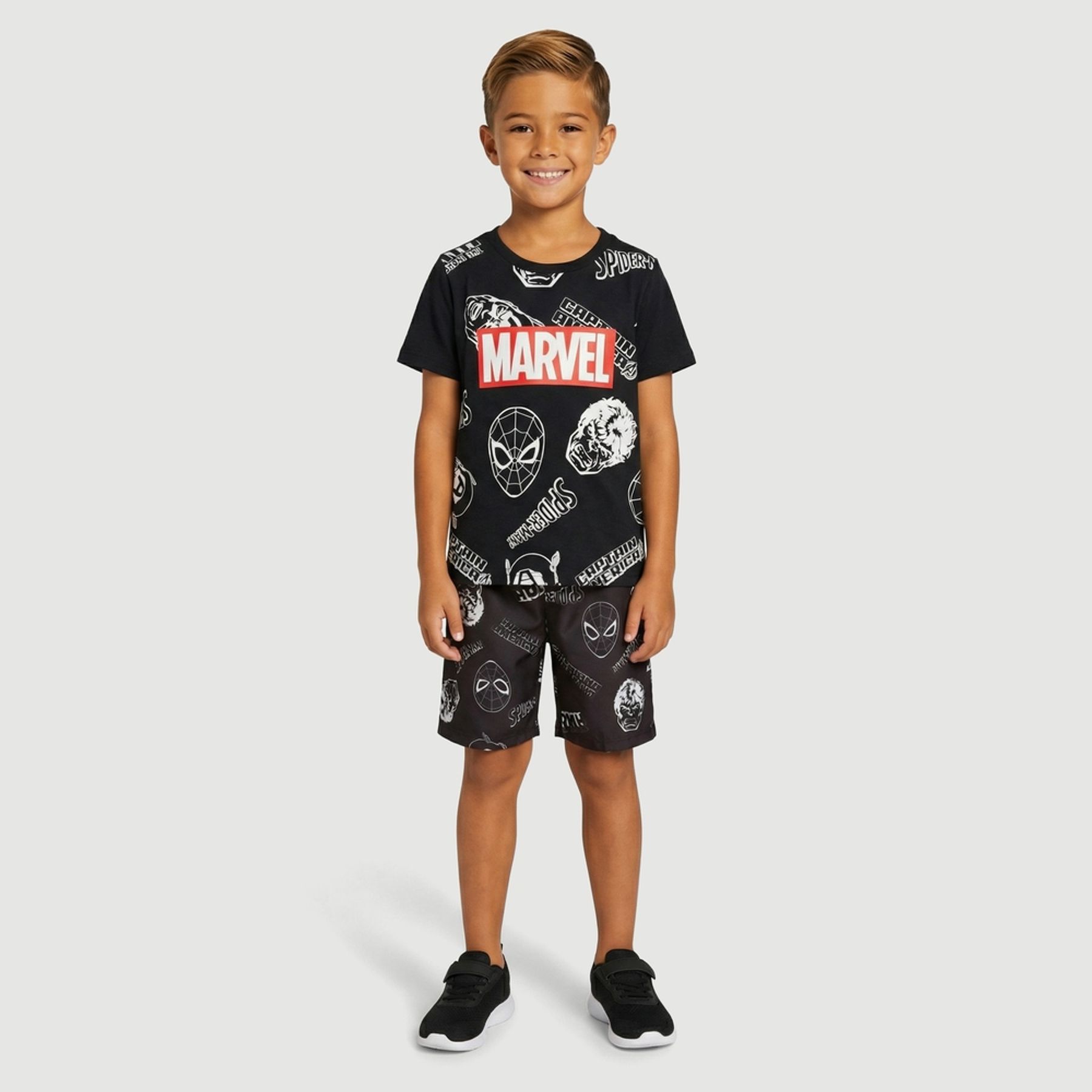 Economia de R$ 24,00Conjunto infantil Marvel The Avengers com camiseta de manga curta e short, ideal para compor looks práticos. A camiseta em malha tem gola redonda e estampa total em contraste com ícones e logotipos, além do logo Marvel centralizado. O short preto possui cós elástico para melhor ajuste.