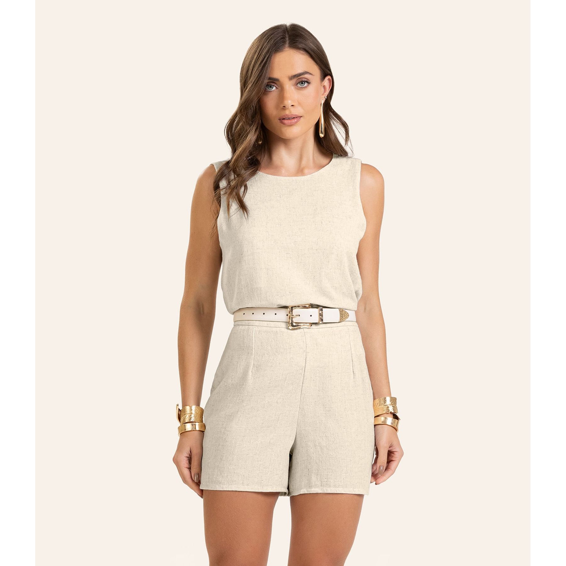 Blusa Feminina Manga Curta Infinita Cor Bege