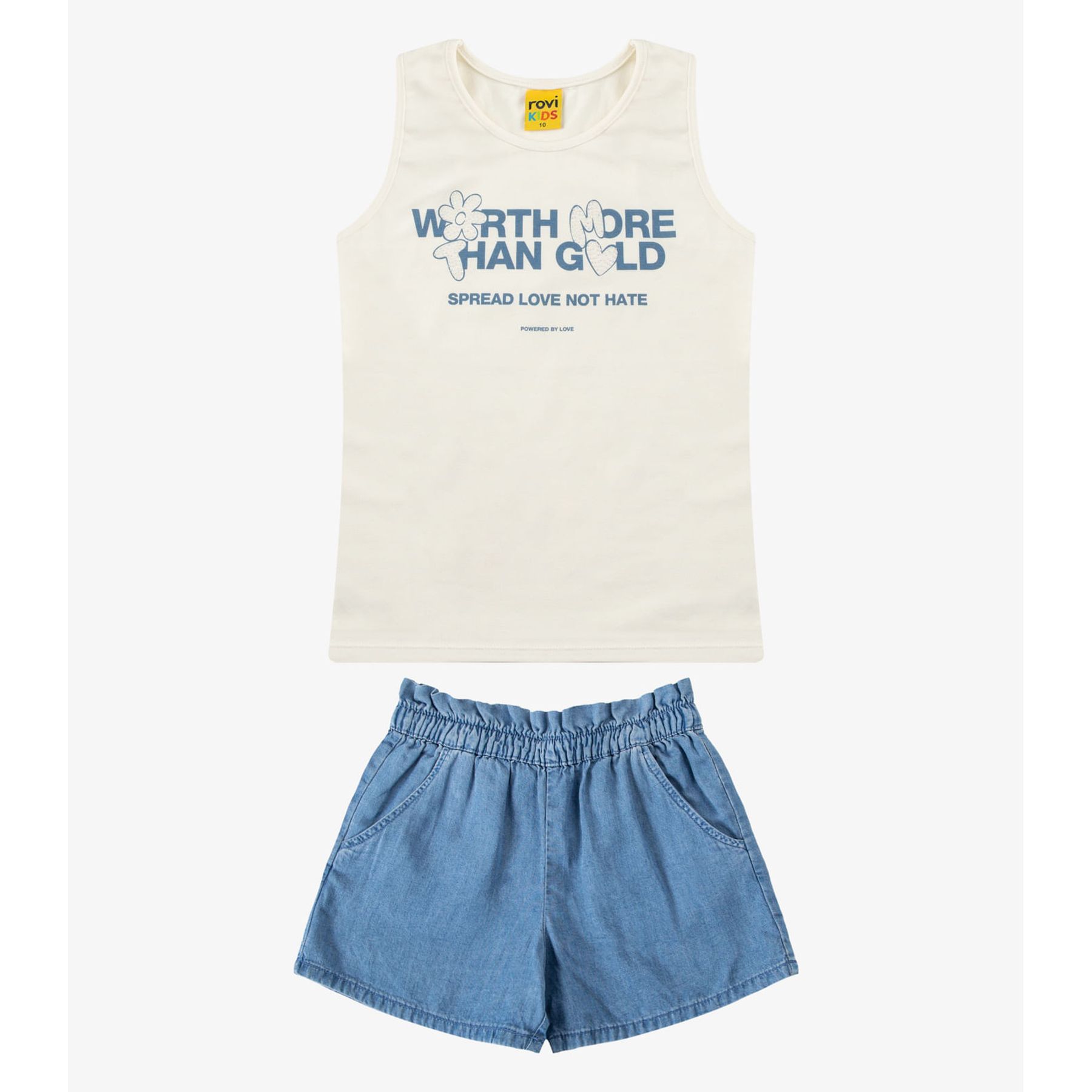 Conjunto Blusa com Shorts Menina Rovi Kids Bege