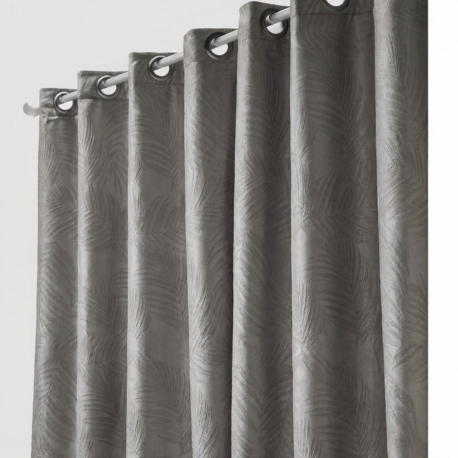 Economia de R$ 22,00A cortina blackout Embossed Leaves é ideal para compor o ambiente com mais privacidade e um visual sofisticado. Em tom prata, traz folhagens em relevo com textura tom sobre tom e acabamento opaco, valorizando a decoração. Confeccionada em 100% algodão e com tecido encorpado, conta com ilhós metálicos circulares no topo para uso em varão, oferecendo praticidade na instalação e no deslizar. Conteúdo da embalagem: 01 cortina.