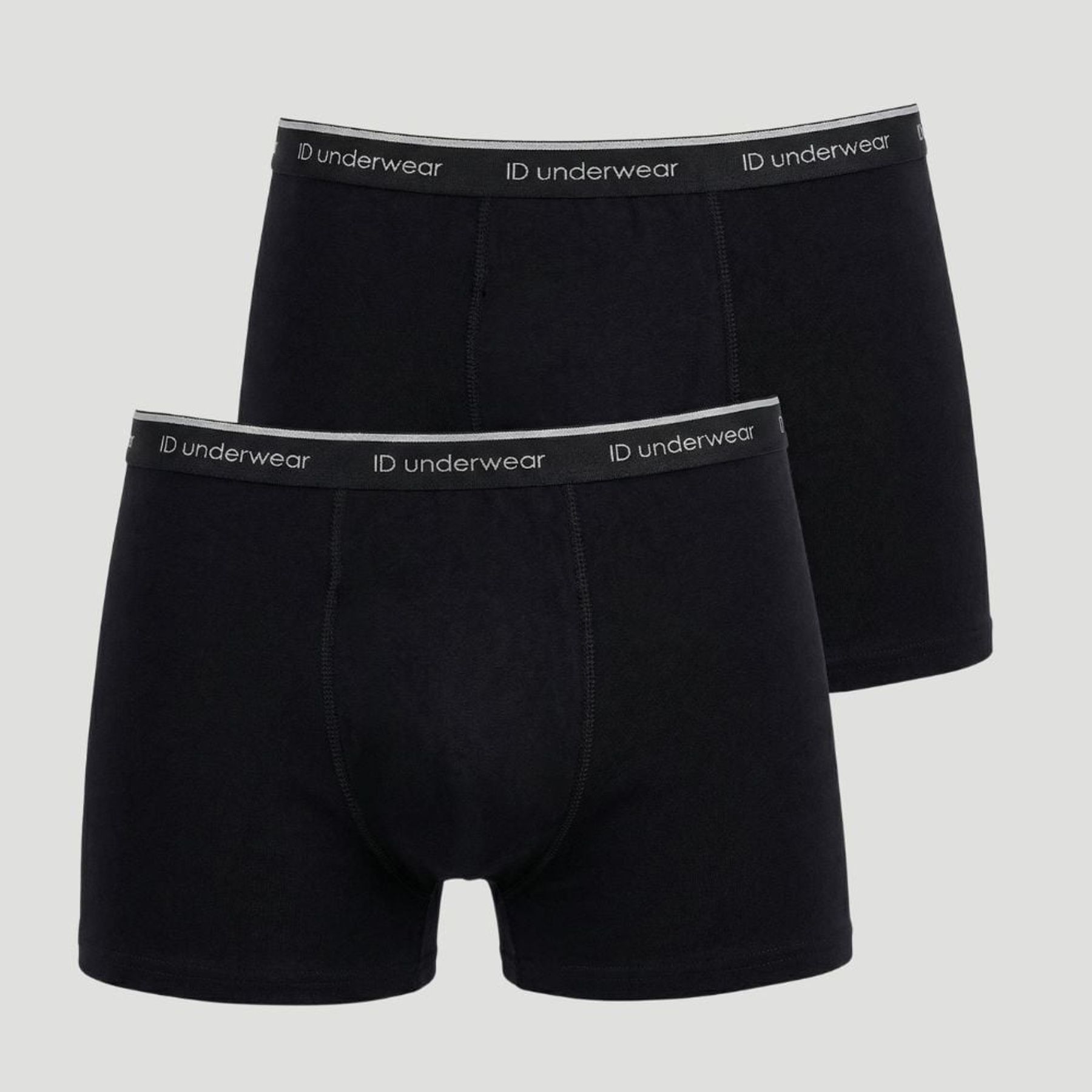 Economia de R$ 3,30Kit de cuecas boxer masculinas Id Underwear, ideal para quem busca uma peça básica para uso diário. Confeccionadas em malha de composição mista com predominância de algodão, oferecem toque macio e bom ajuste ao corpo. O modelo é liso na cor preta e conta com cós elástico com escrita contrastante e recorte frontal anatômico.