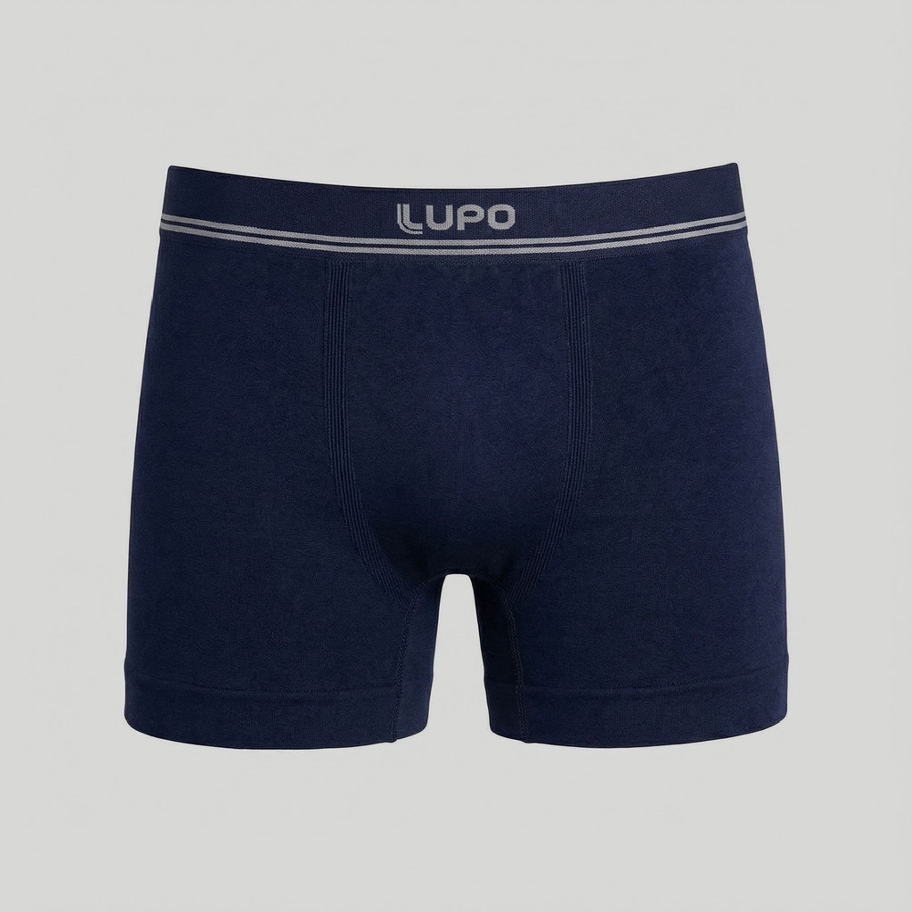 Economia de R$ 4,00Cueca boxer masculina Lupo desenvolvida para oferecer ajuste firme e toque macio no uso diário. O visual é liso em azul marinho e o cós elástico com logo garante sustentação e acabamento moderno.